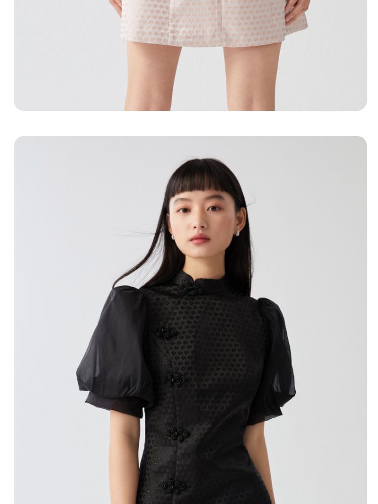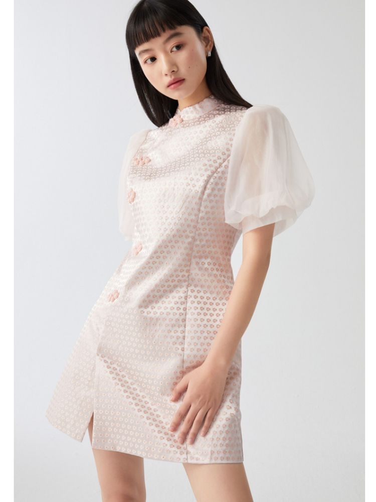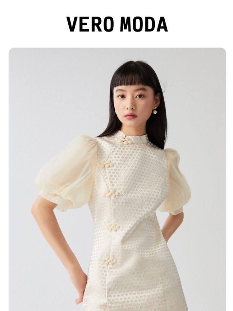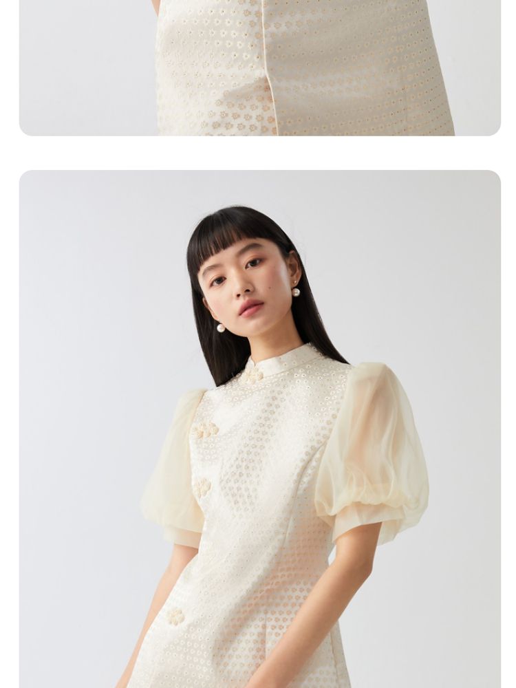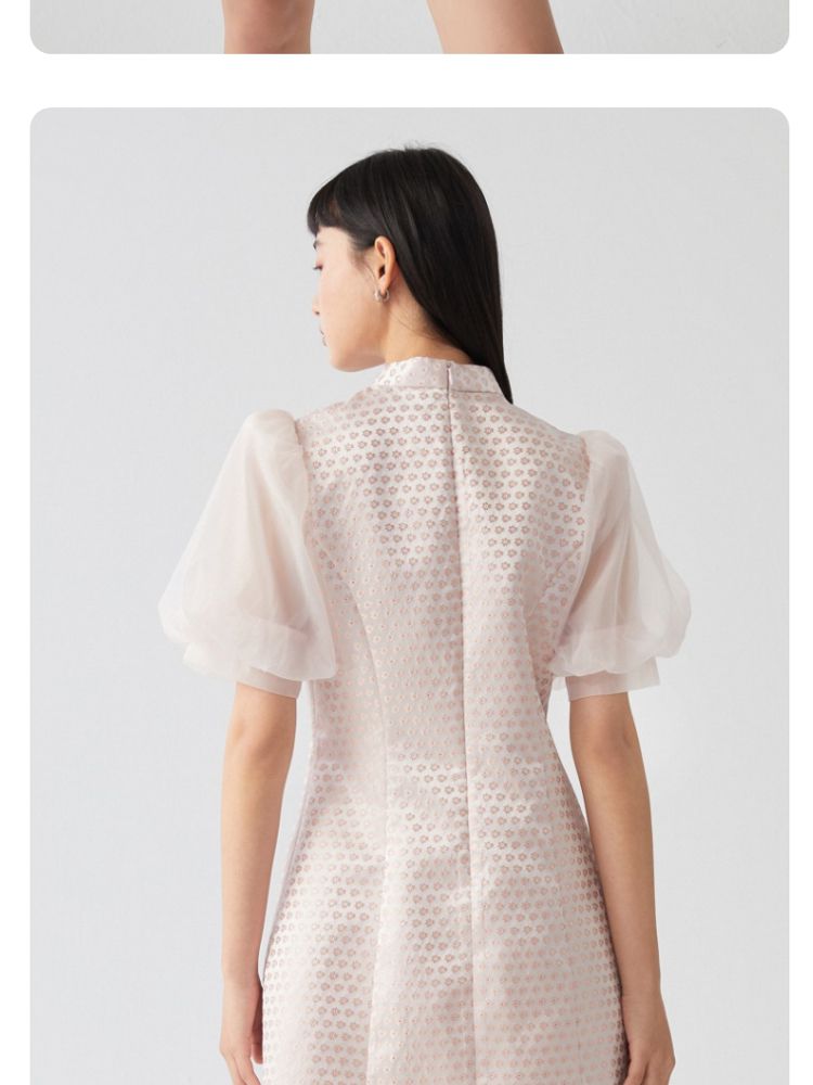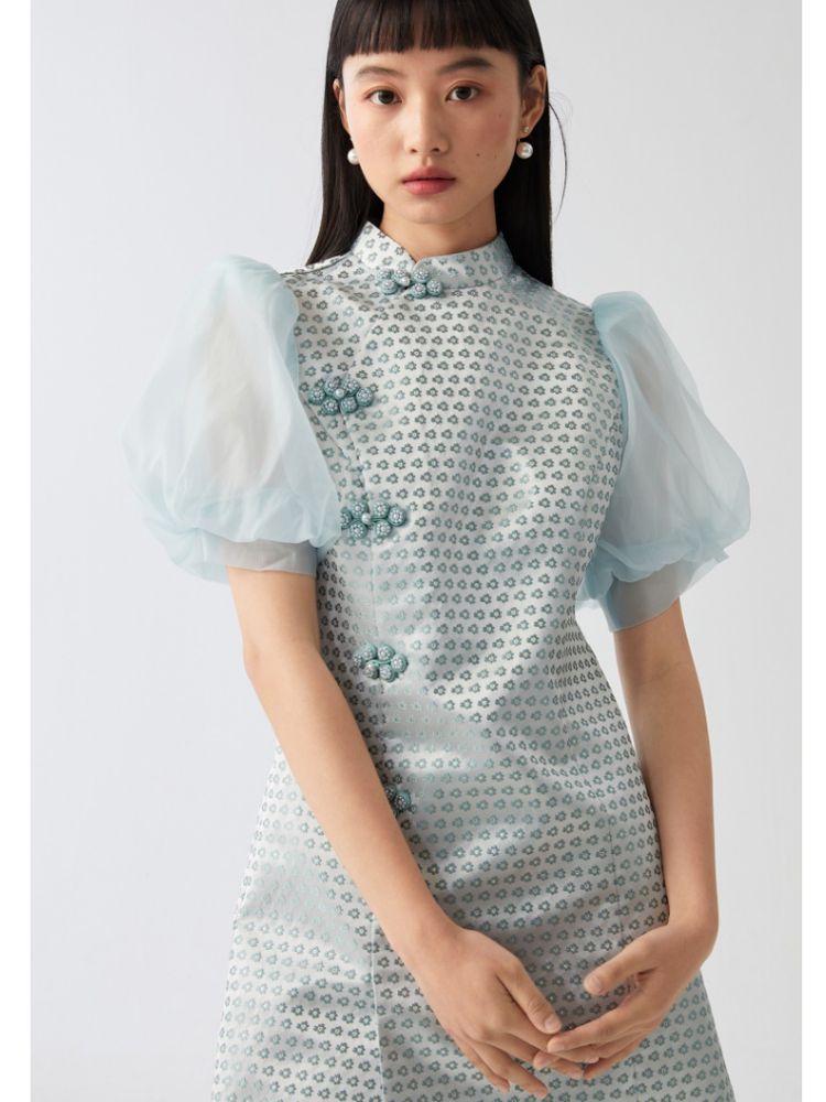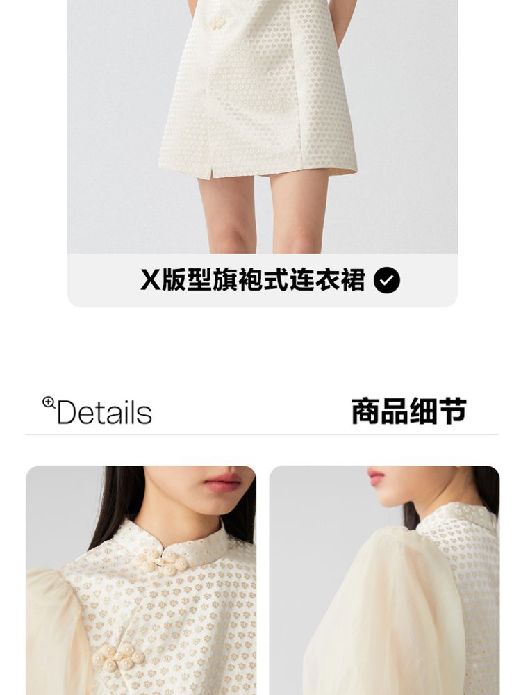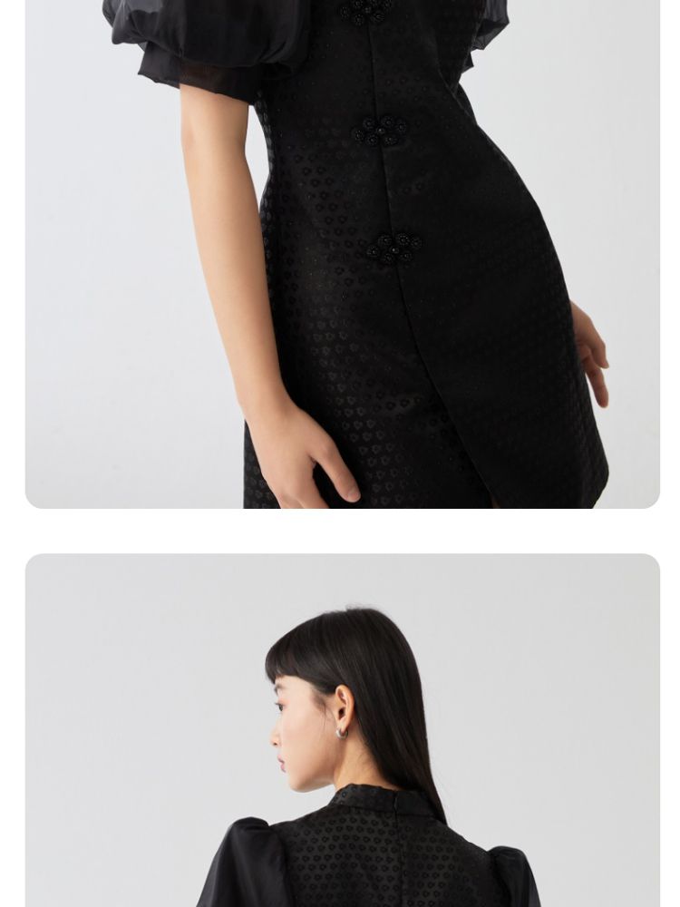 商品名称:【新中式国风盘扣旗袍】专柜减龄泡泡袖连衣裙 971089