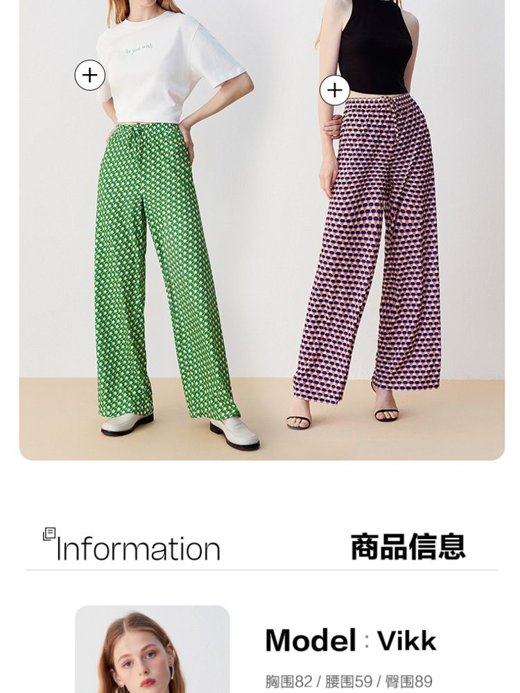 商品名称:【春秋专柜款】几何撞色图案纹理感宽松阔腿休闲裤女 992017