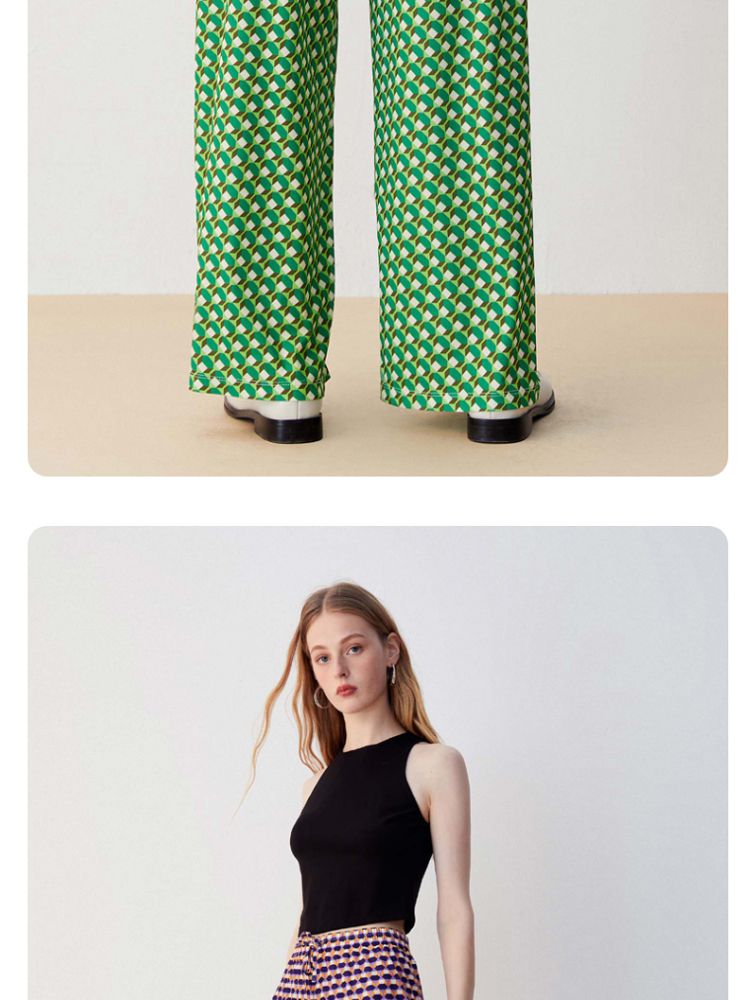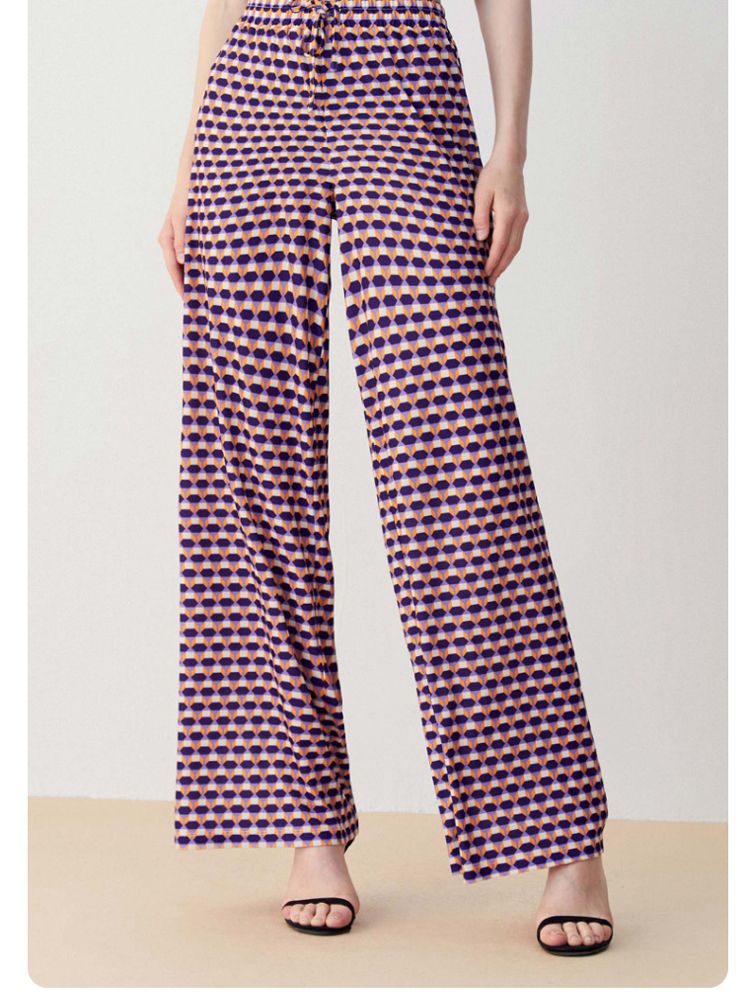 【春秋专柜款】几何撞色图案纹理感宽松阔腿休闲裤女 992017