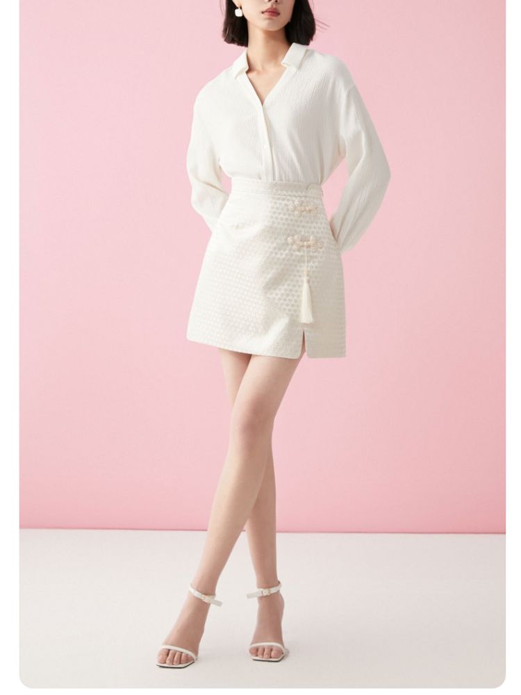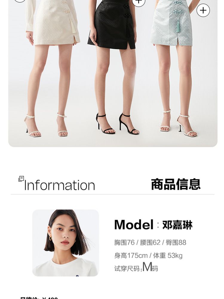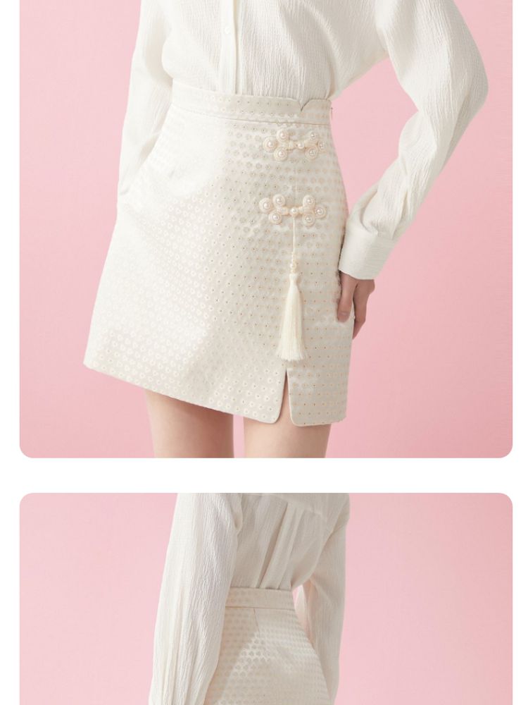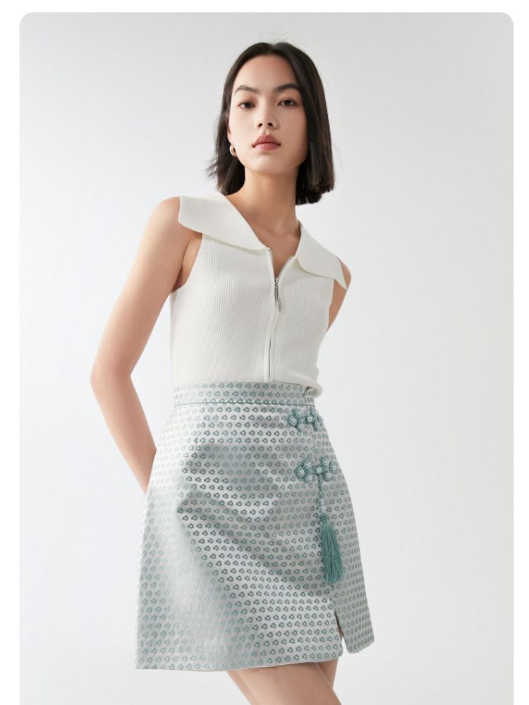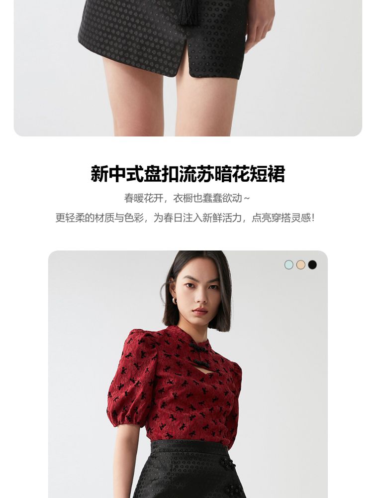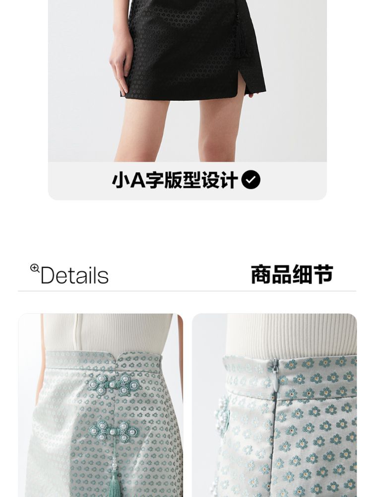 商品名称:【新中式盘扣流苏】春夏商场同款暗花短裙半身裙气质百搭时尚 420625