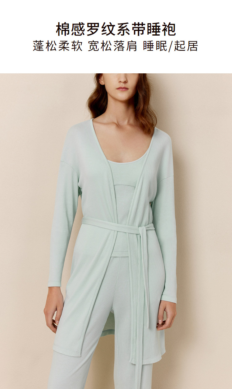 NEIWAI内外女士棉感罗纹系带睡袍蓬松柔软睡眠家居日常睡衣 209034