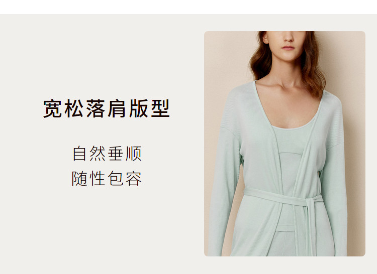 商品名称:NEIWAI内外女士棉感罗纹系带睡袍蓬松柔软睡眠家居日常睡衣 209034