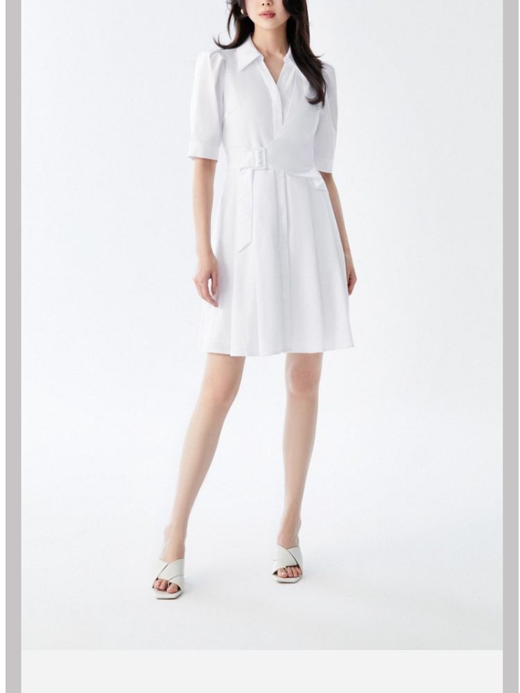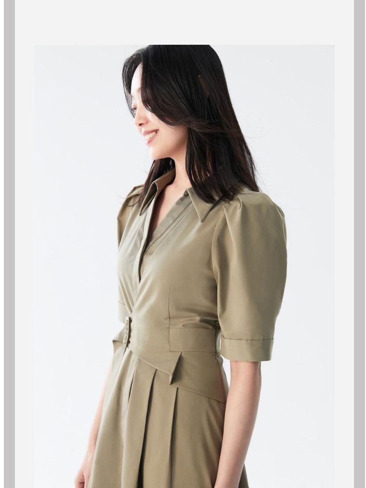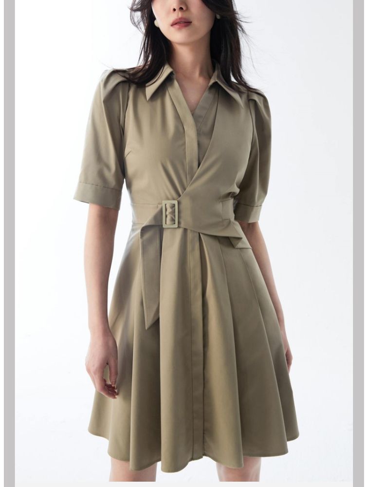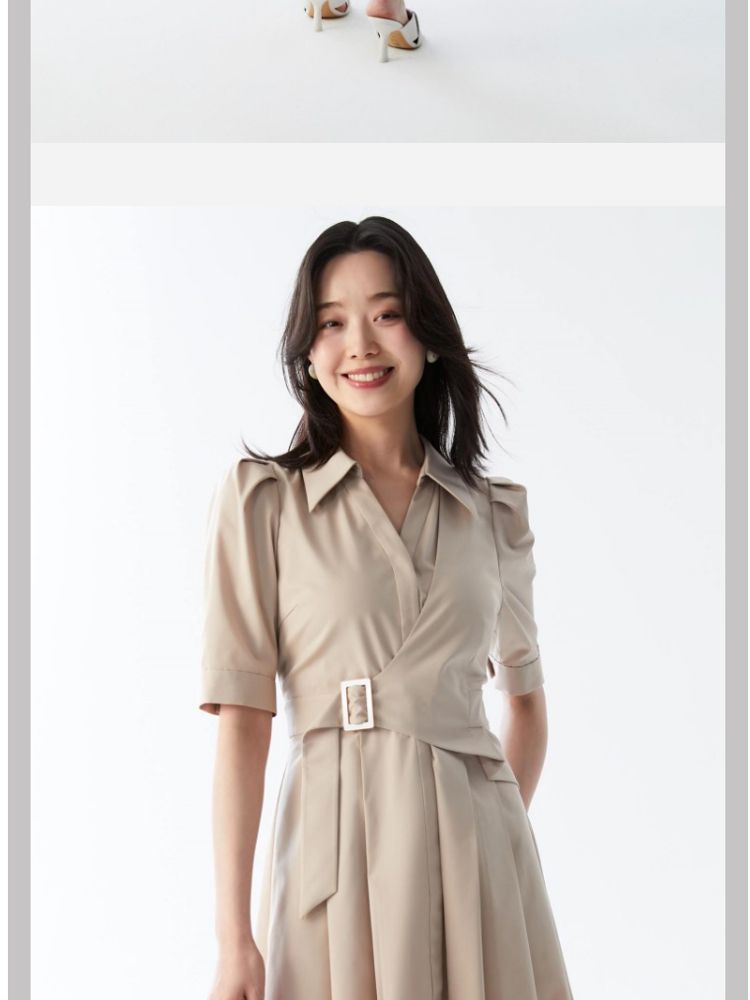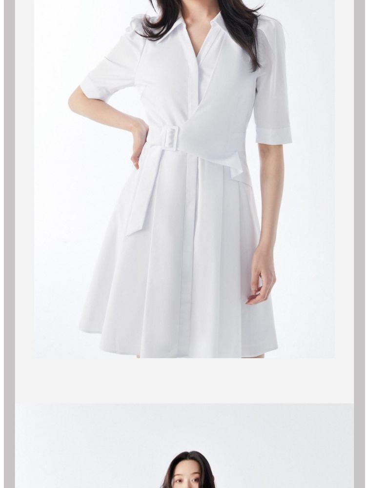 商品名称:【商场同款】春夏优雅纯色中袖收腰衬衫连衣裙女气质百搭时尚 081489