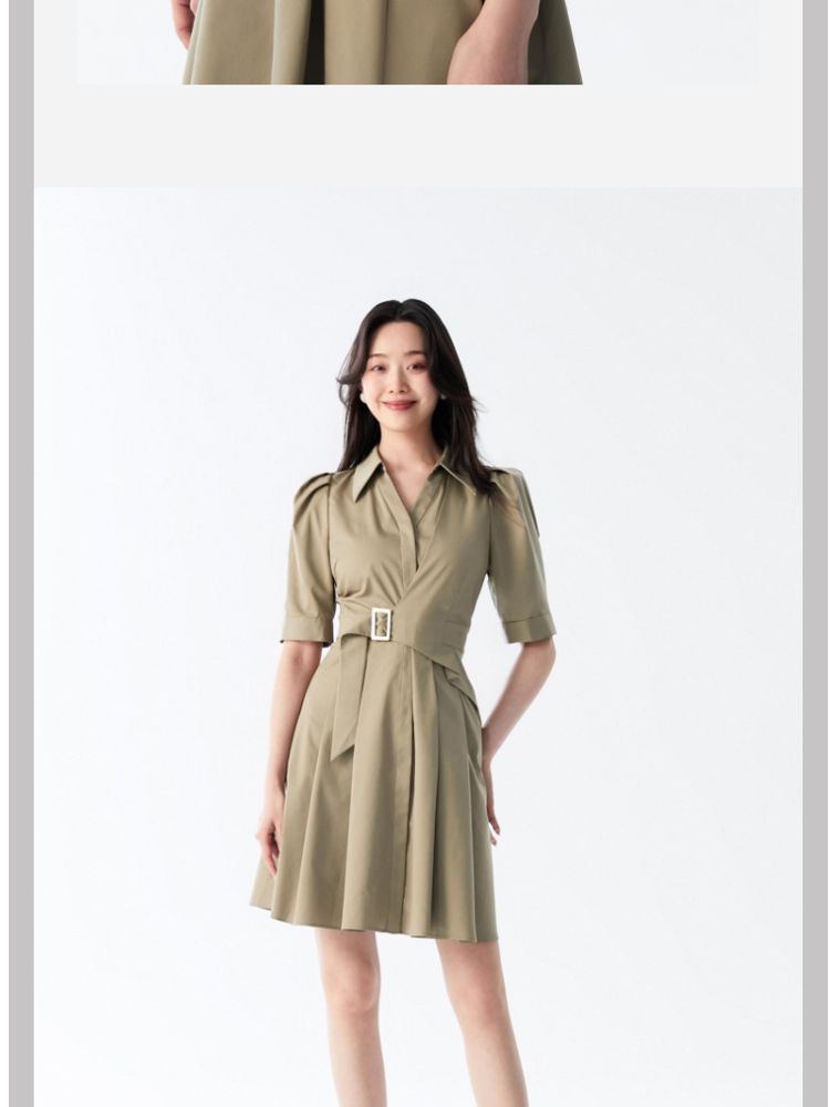 【商场同款】春夏优雅纯色中袖收腰衬衫连衣裙女气质百搭时尚 081489