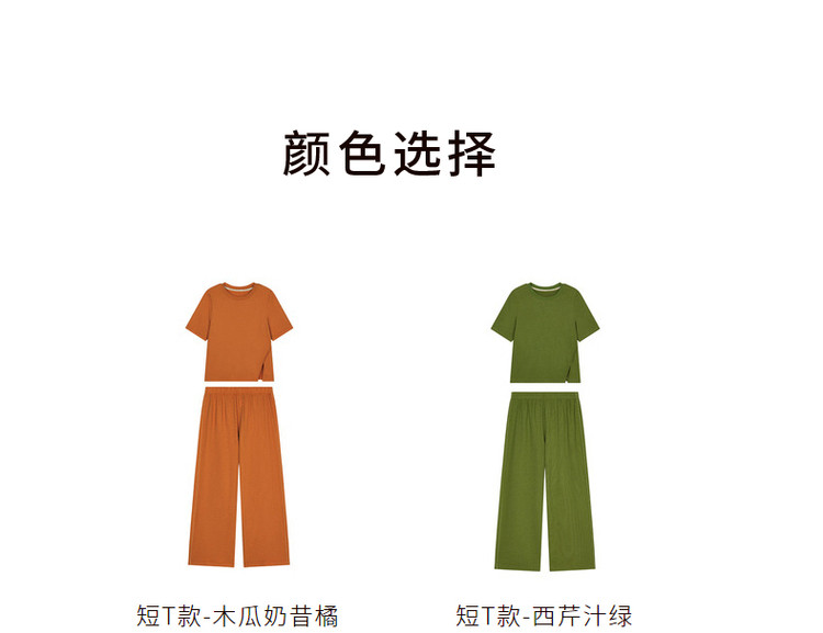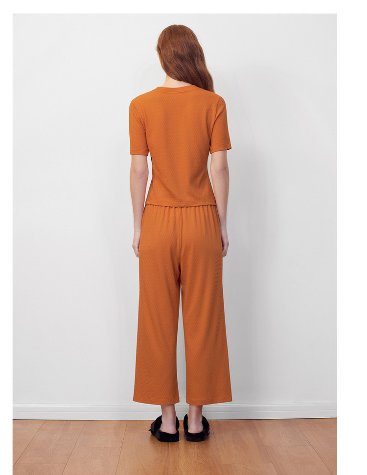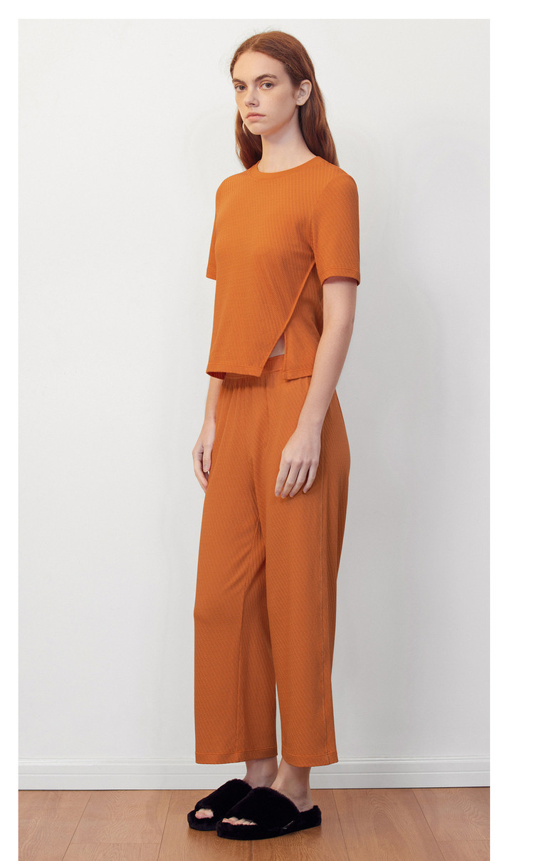 NEIWAI内外侧开衩短袖T恤/松紧腰直筒八分裤女士套装 145610