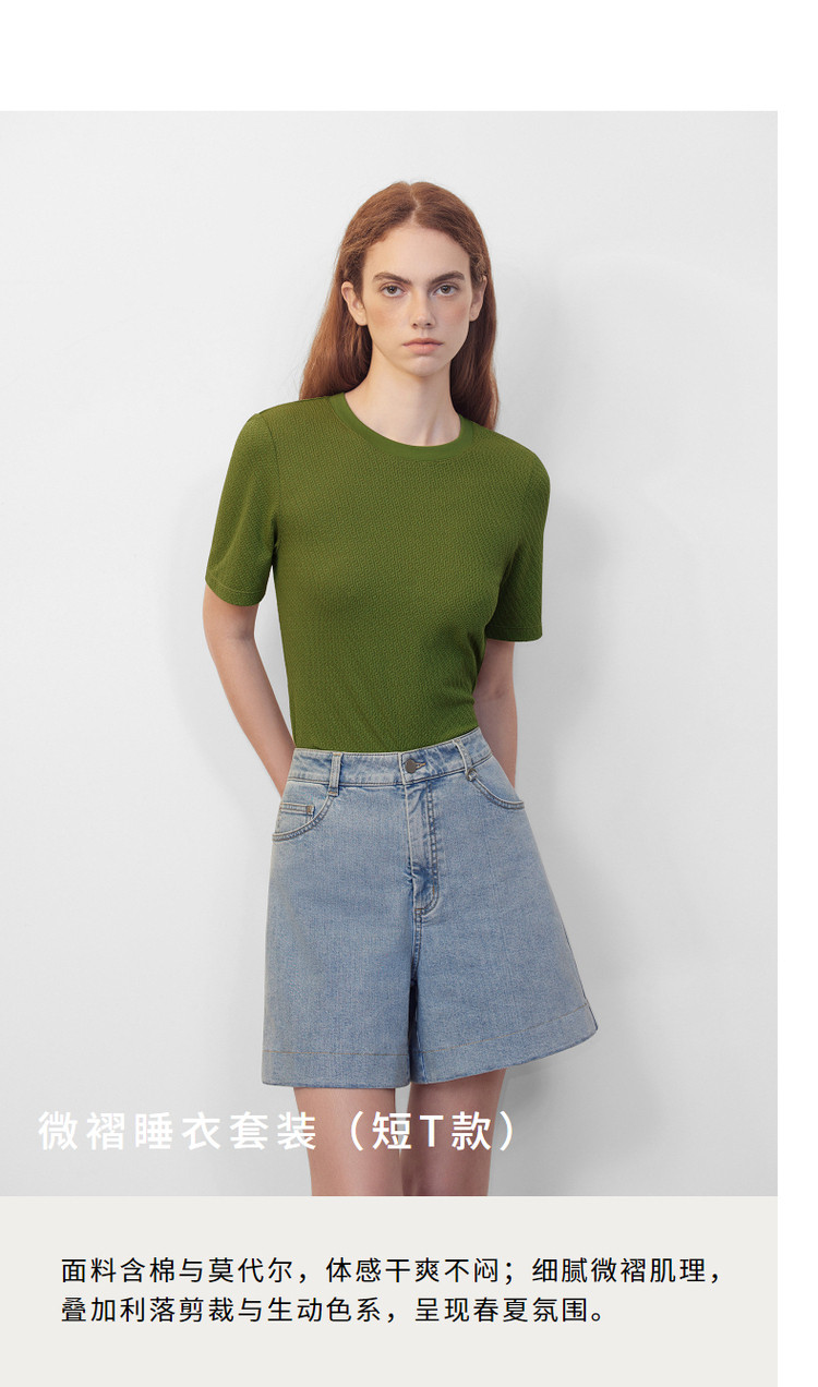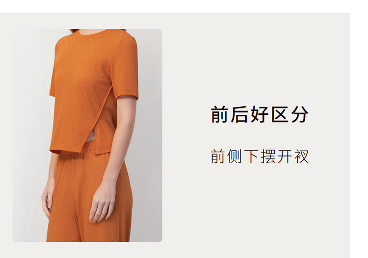 商品名称:NEIWAI内外侧开衩短袖T恤/松紧腰直筒八分裤女士套装 145610