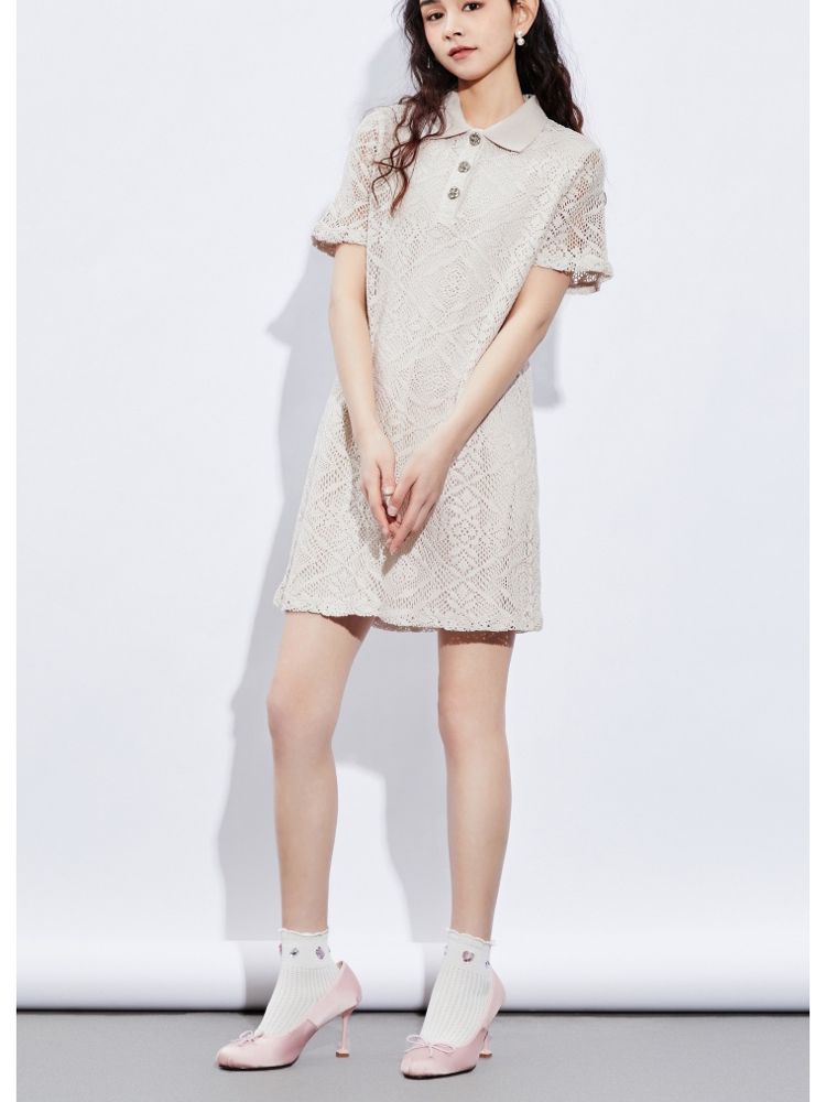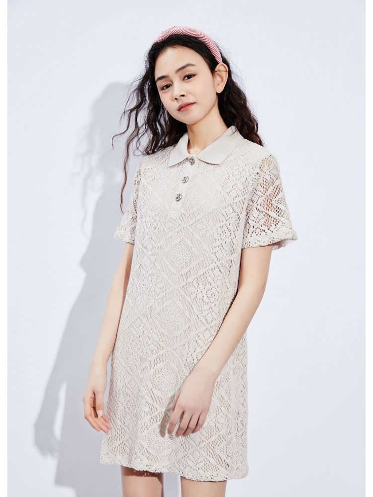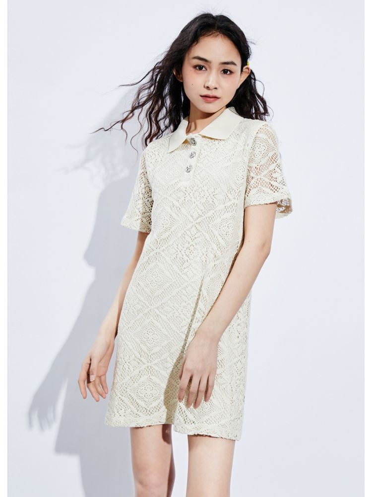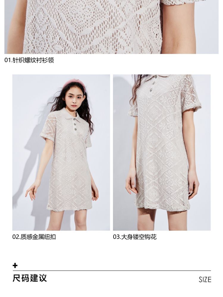 商品名称:【镂空短款】夏季气质显瘦POLO领连衣裙女 749018