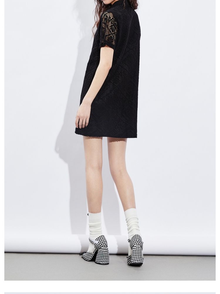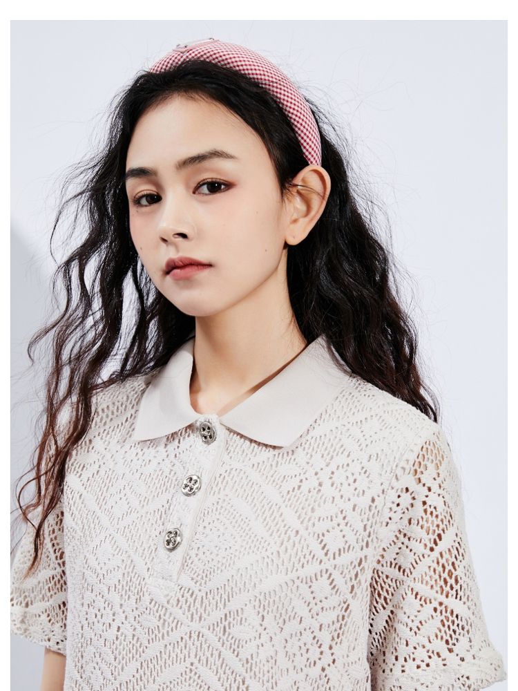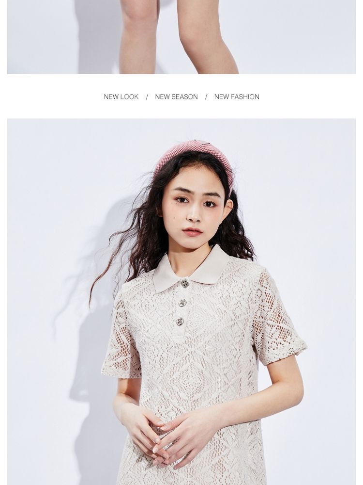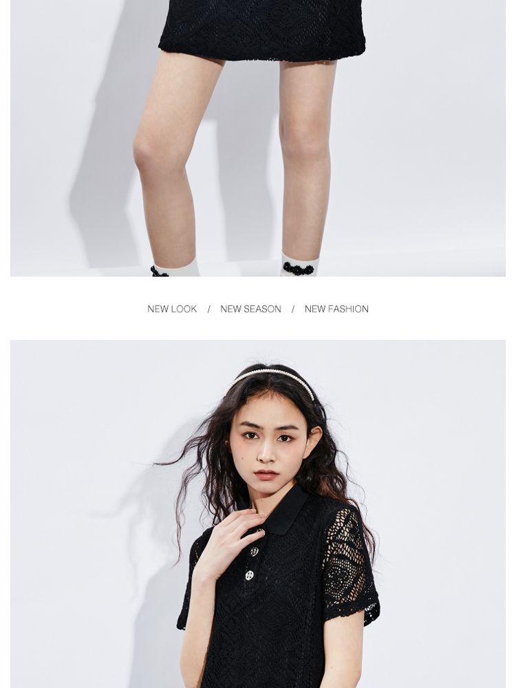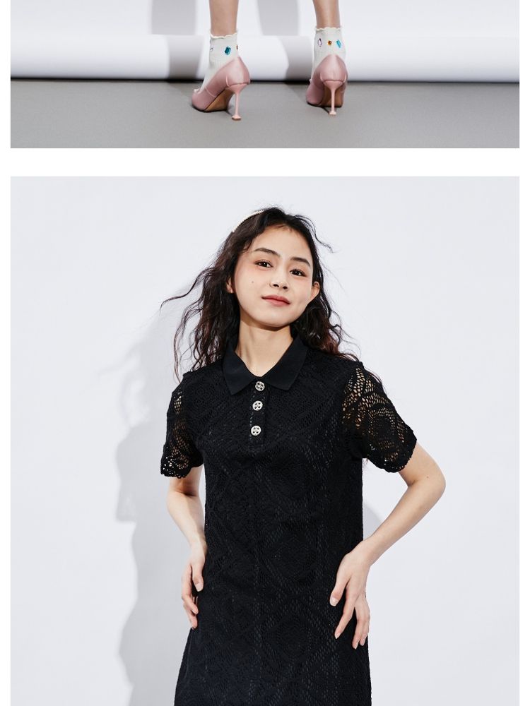商品名称:【镂空短款】夏季气质显瘦POLO领连衣裙女 749018