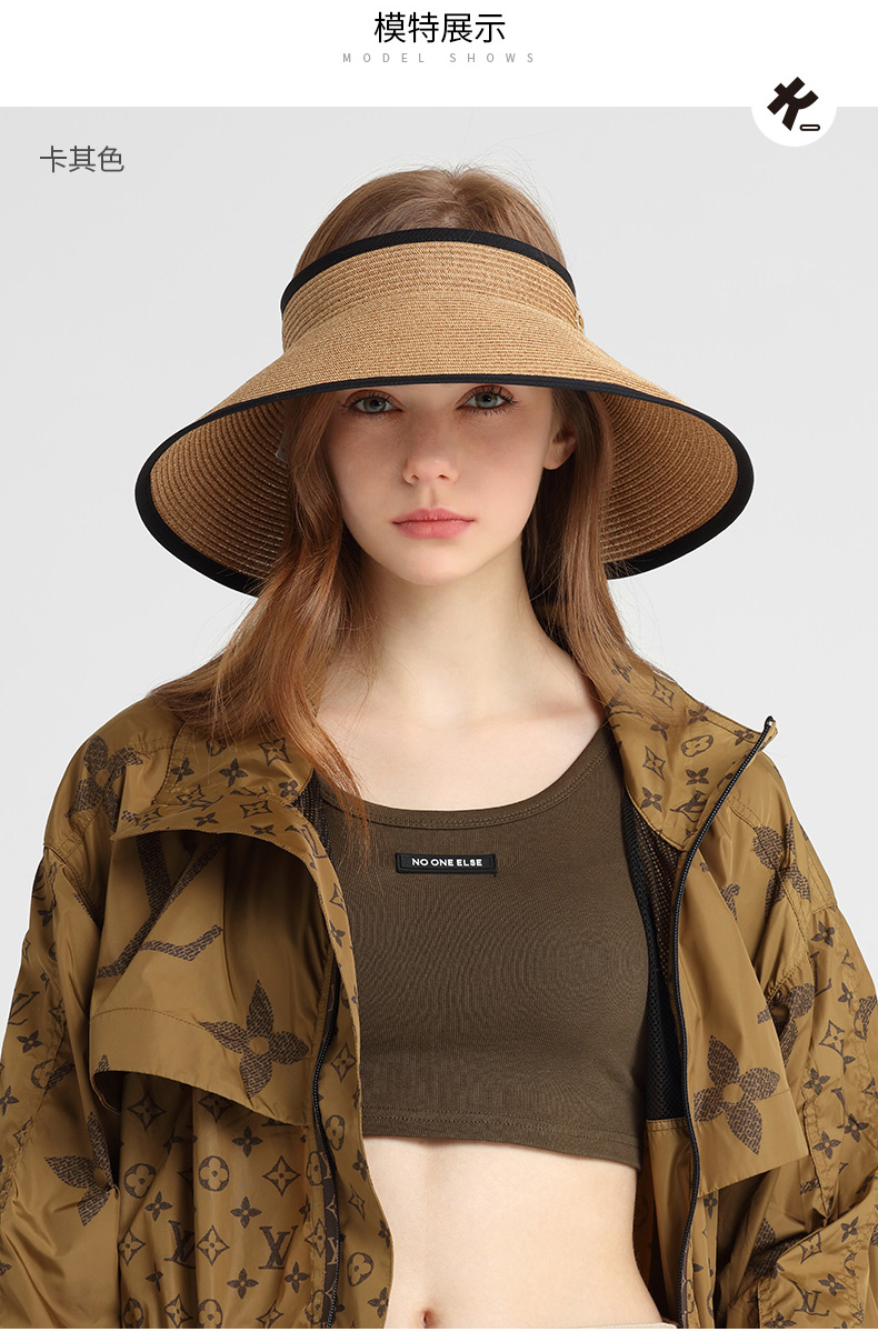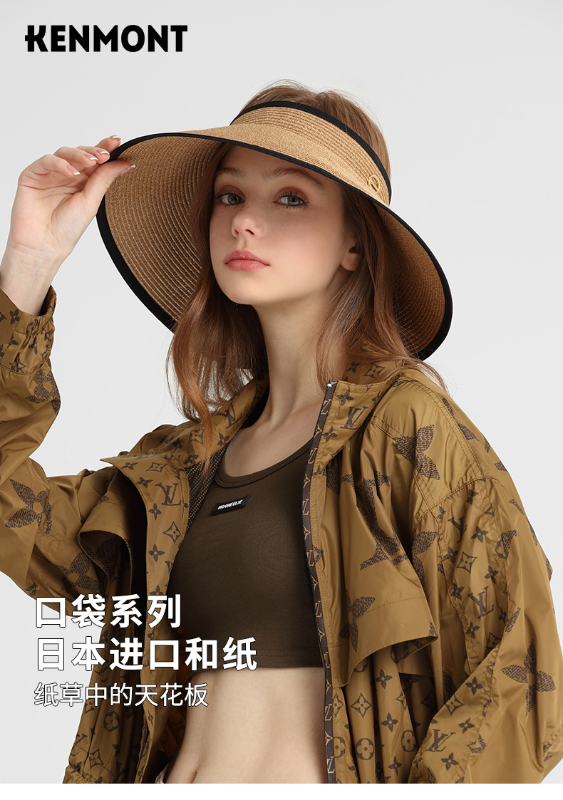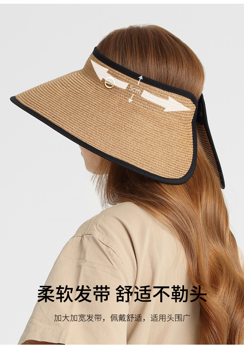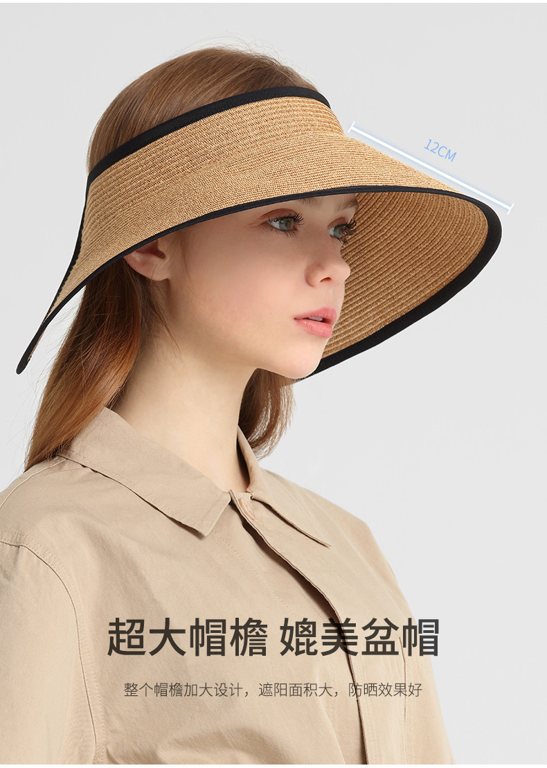 商品名称:卡蒙可折叠空顶遮脸大草帽女夏沙滩大帽檐遮阳帽凉帽大头围防晒帽