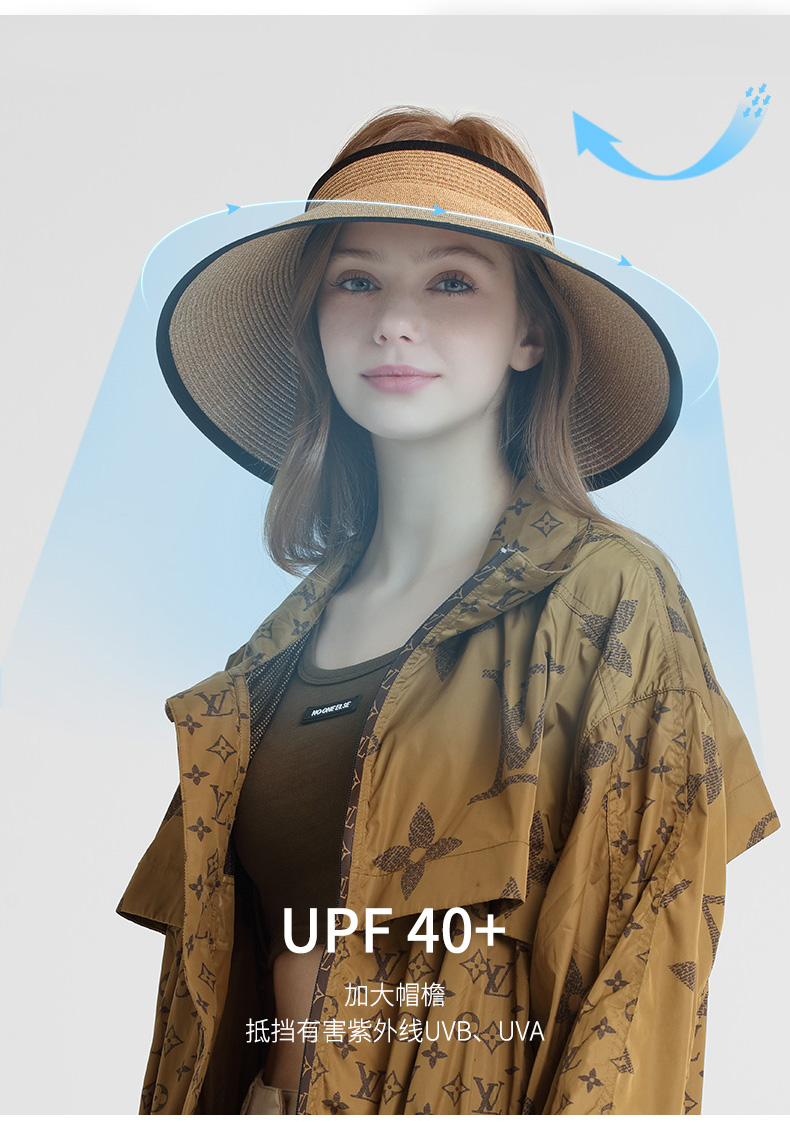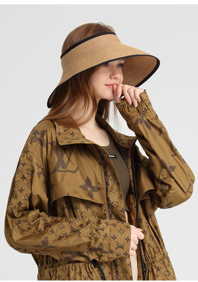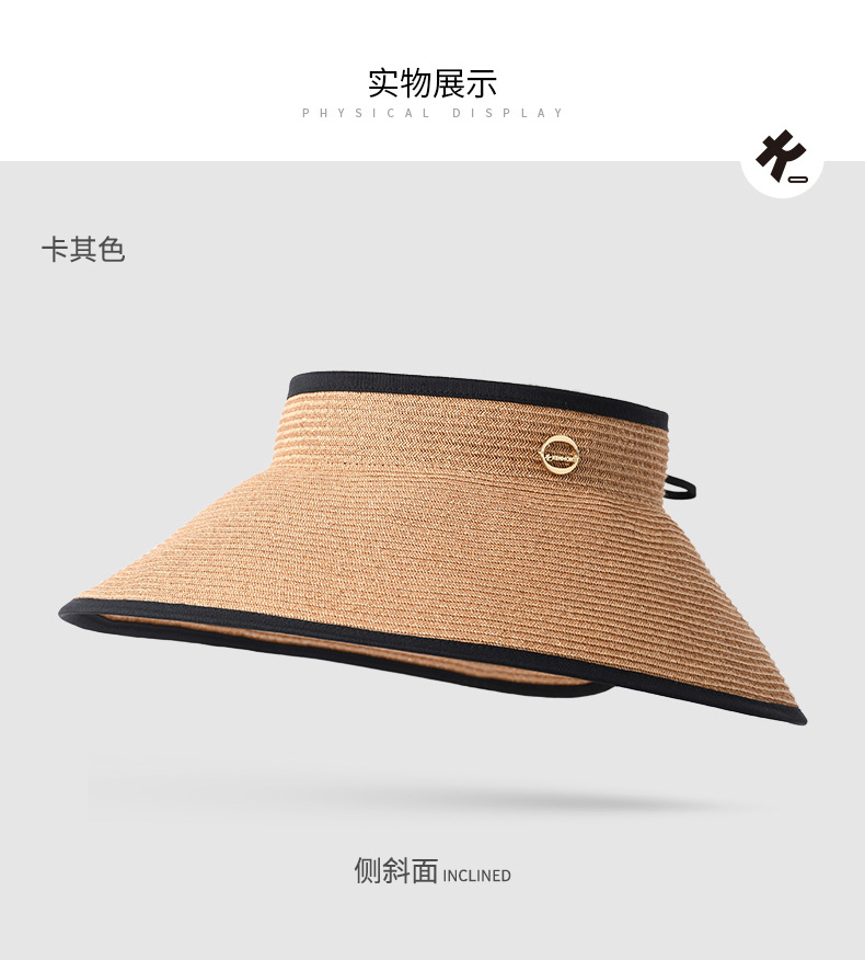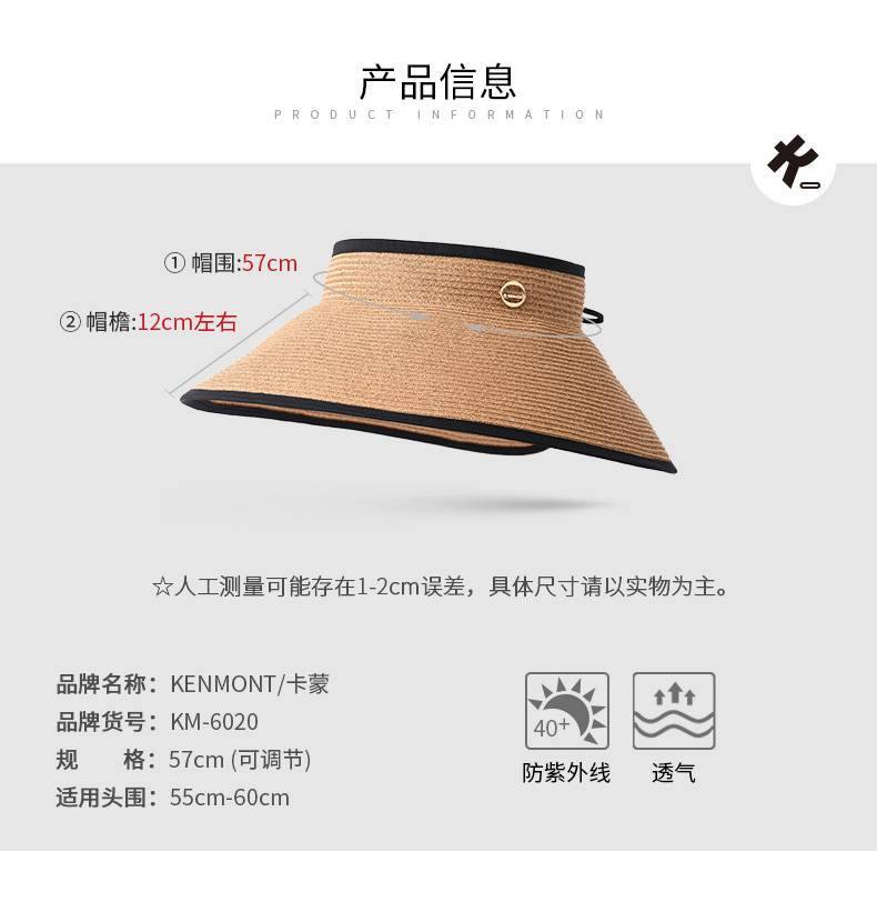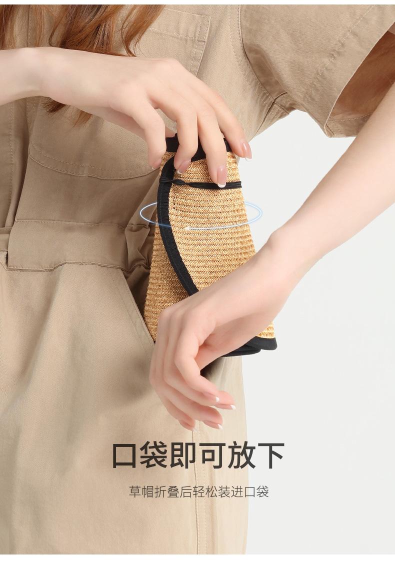 商品名称:卡蒙可折叠空顶遮脸大草帽女夏沙滩大帽檐遮阳帽凉帽大头围防晒帽