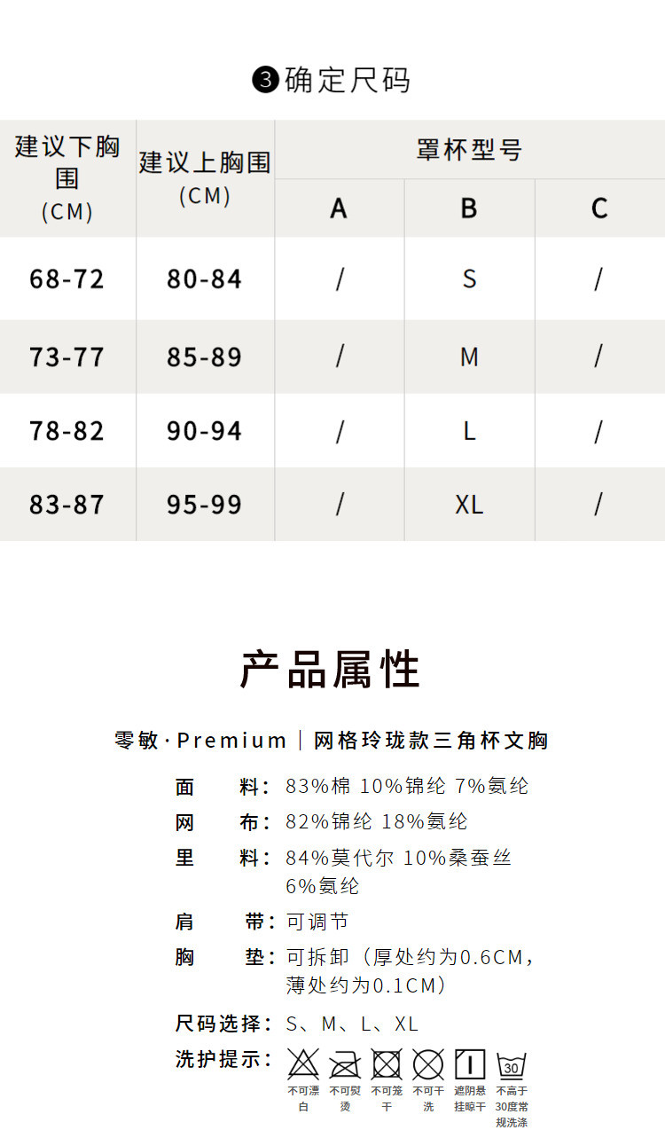 商品名称:NEIWAI内外女士网格玲珑款三角杯文胸舒适纯色无钢圈内衣 838026