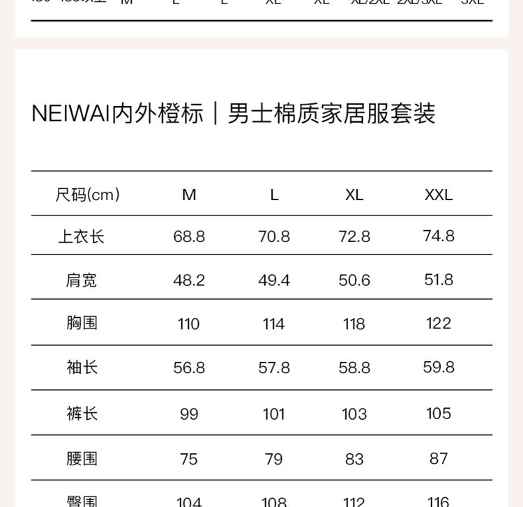 | 尺码 | 肩宽(cm) | 袖长(cm) | 上装号型 | 下装号型 | 衣长(cm) | 身高(cm) | 腰围(cm) | 裤长(cm) | 体重(kg) | 臀围(cm) | 胸围(cm) | 号型 |