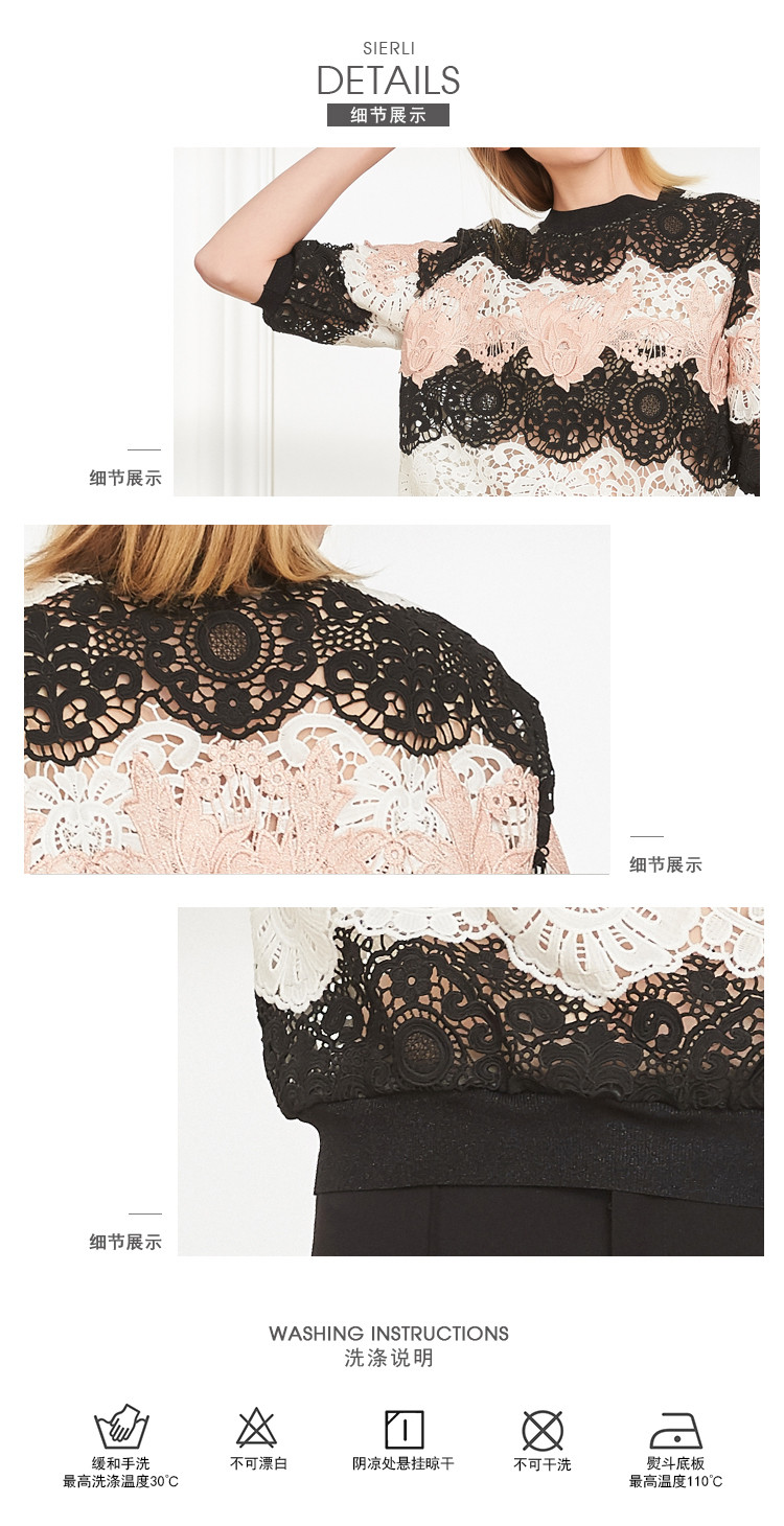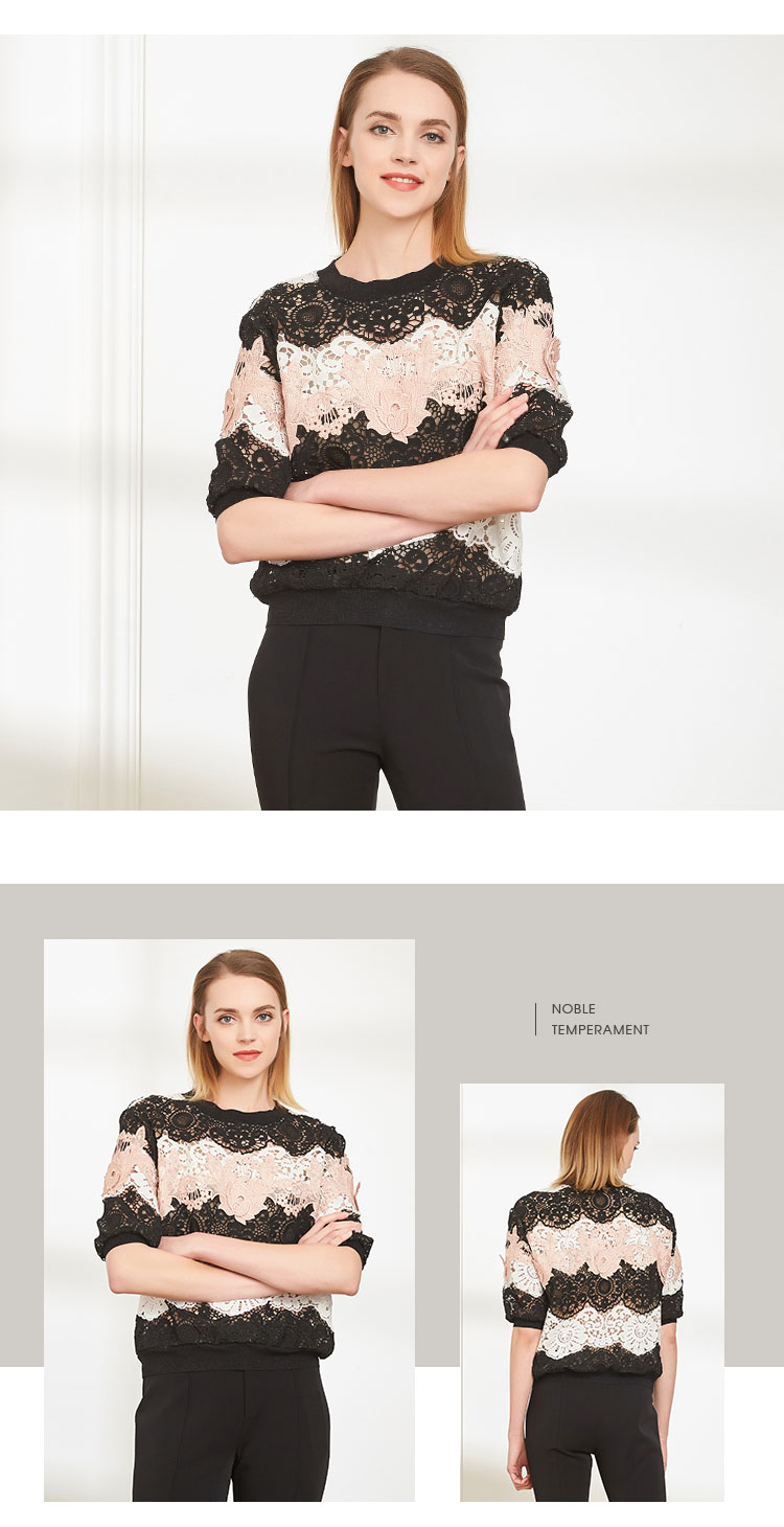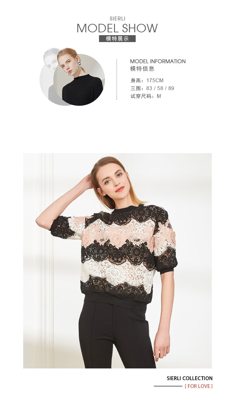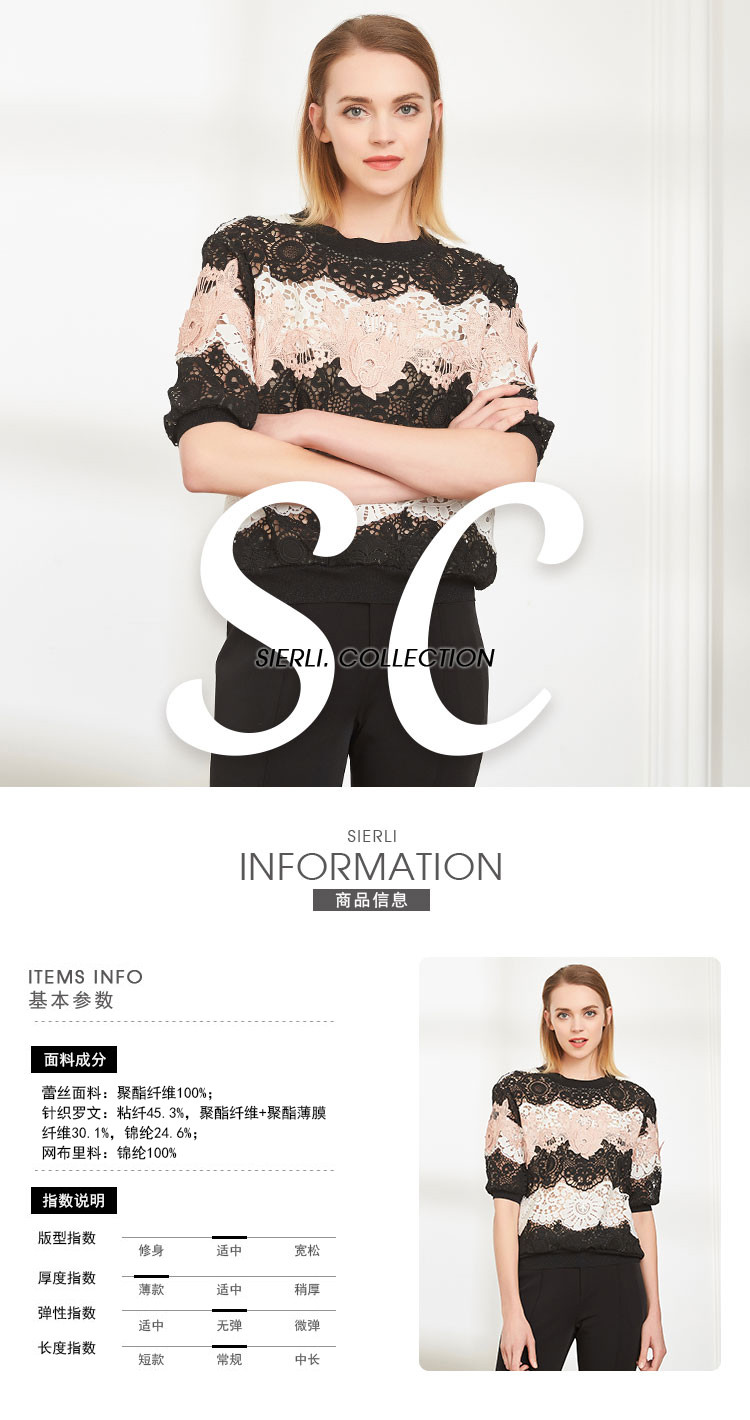 商品名称:商场同款丝质蕾丝短款宽松短袖上衣通勤 419487