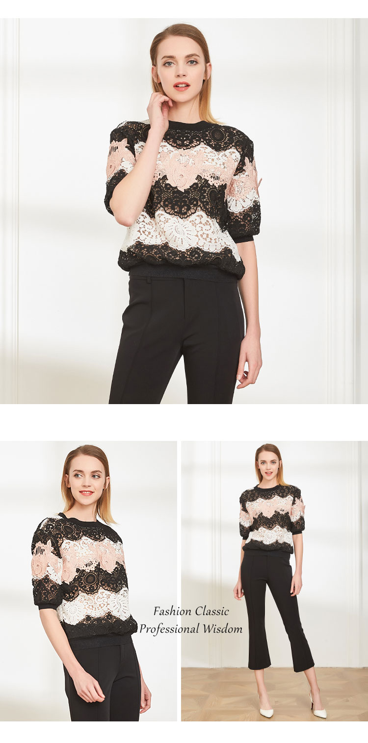 商场同款丝质蕾丝短款宽松短袖上衣通勤 419487