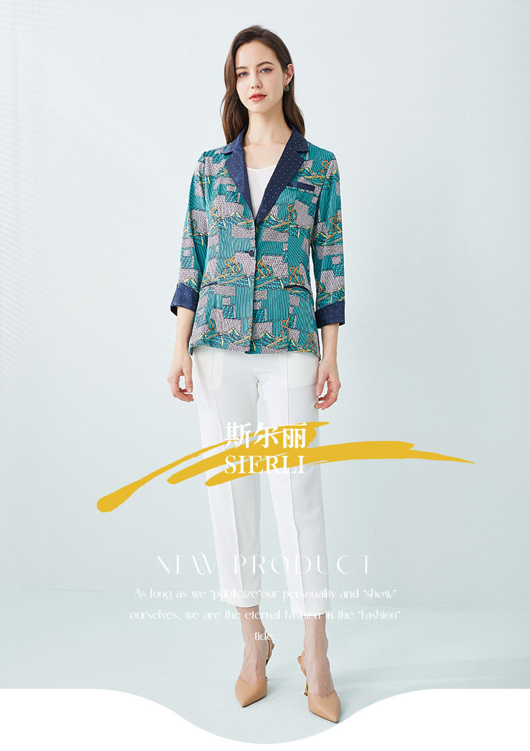 商品名称:商场同款春季复古日系巴洛克西装撞色领烫钻微修身外套 373343