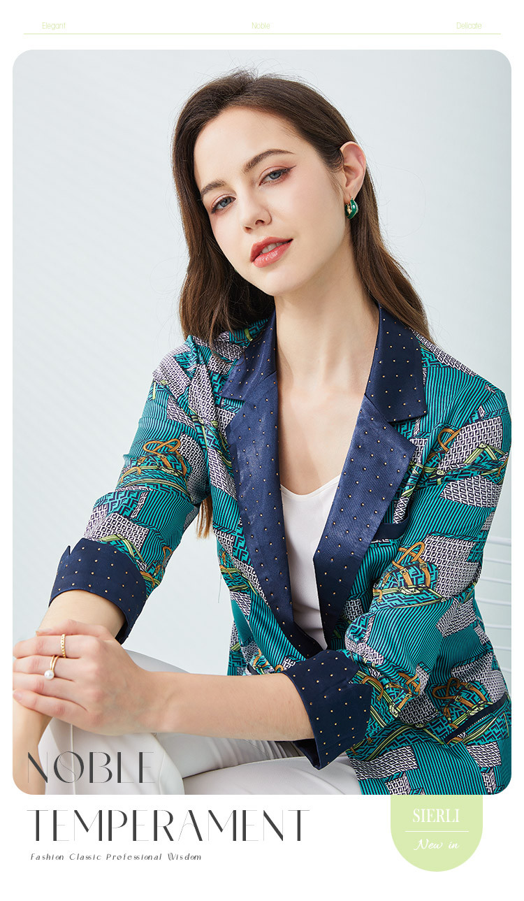 商场同款春季复古日系巴洛克西装撞色领烫钻微修身外套 373343