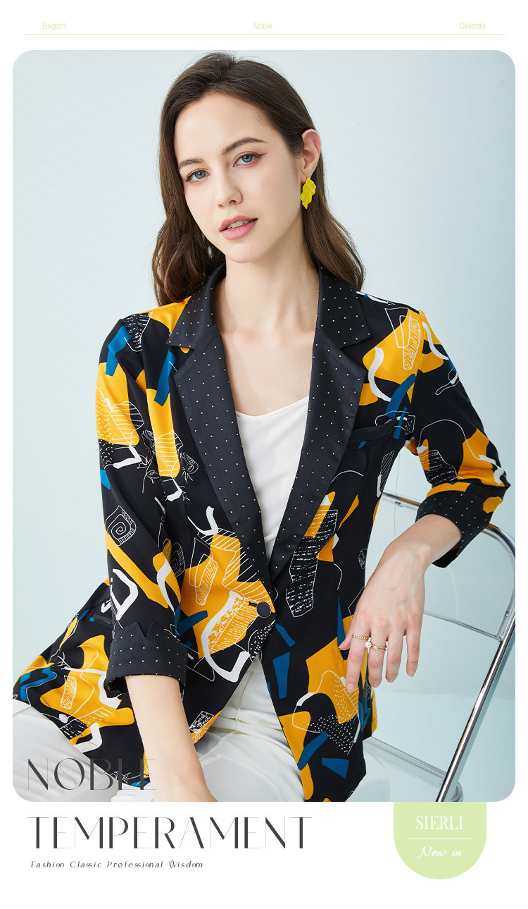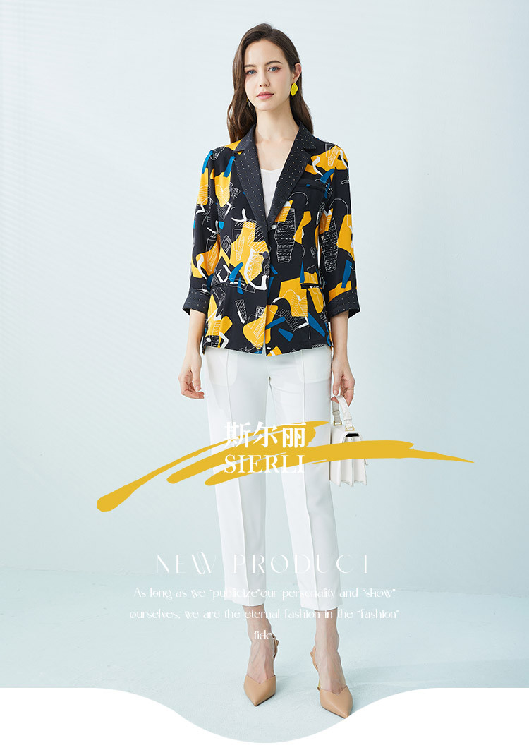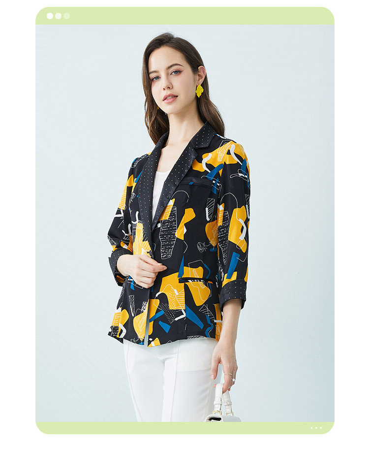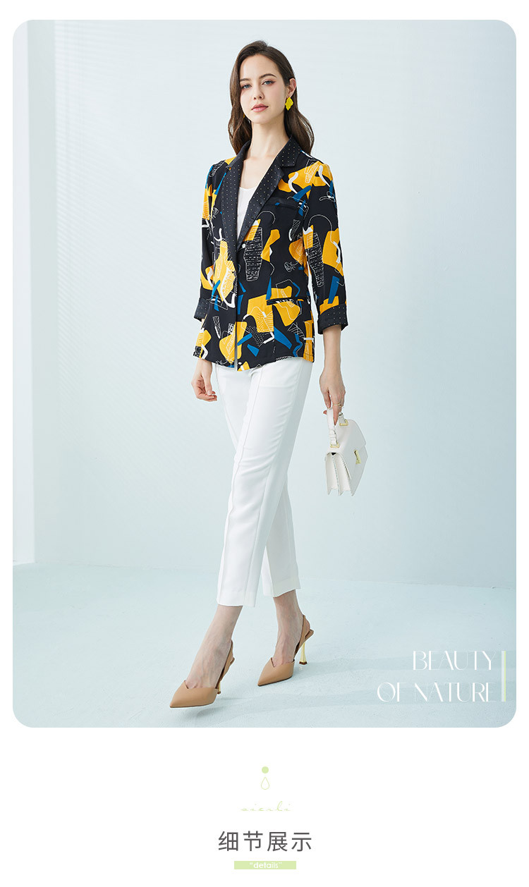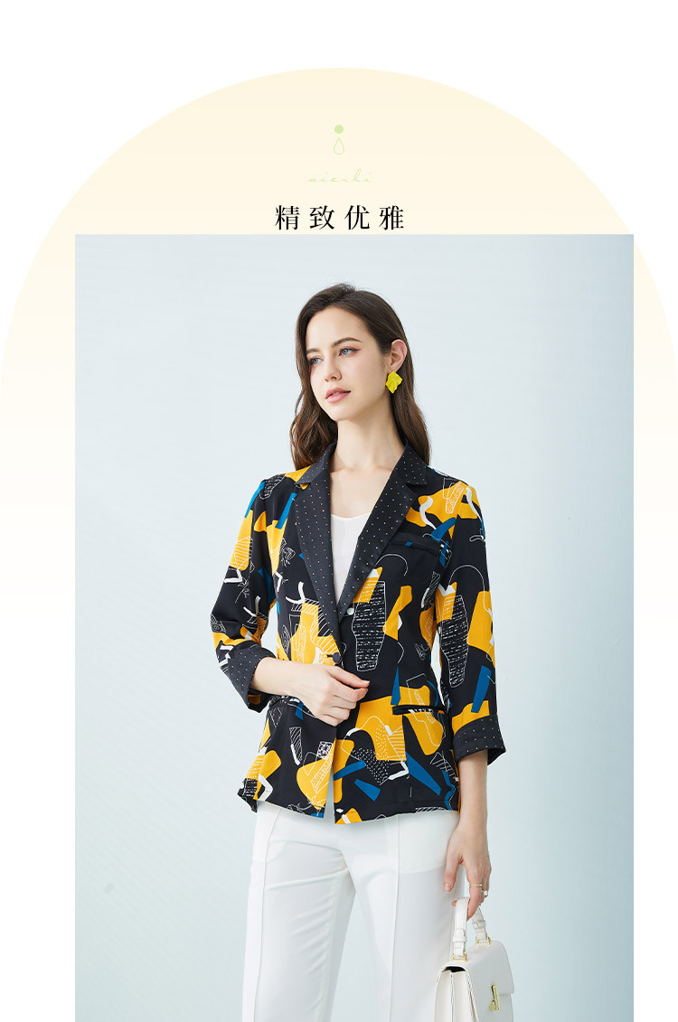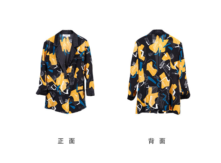 商品名称:商场同款春季文艺不规则印花帅气风精致西装上衣外套 089759