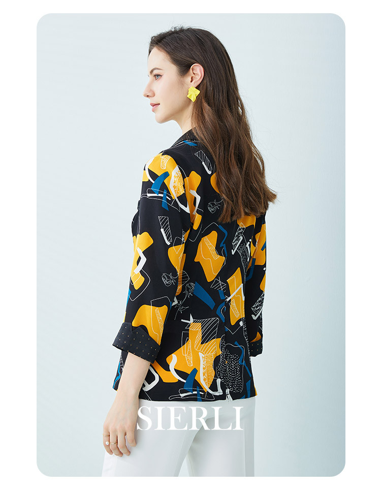 商场同款春季文艺不规则印花帅气风精致西装上衣外套 089759