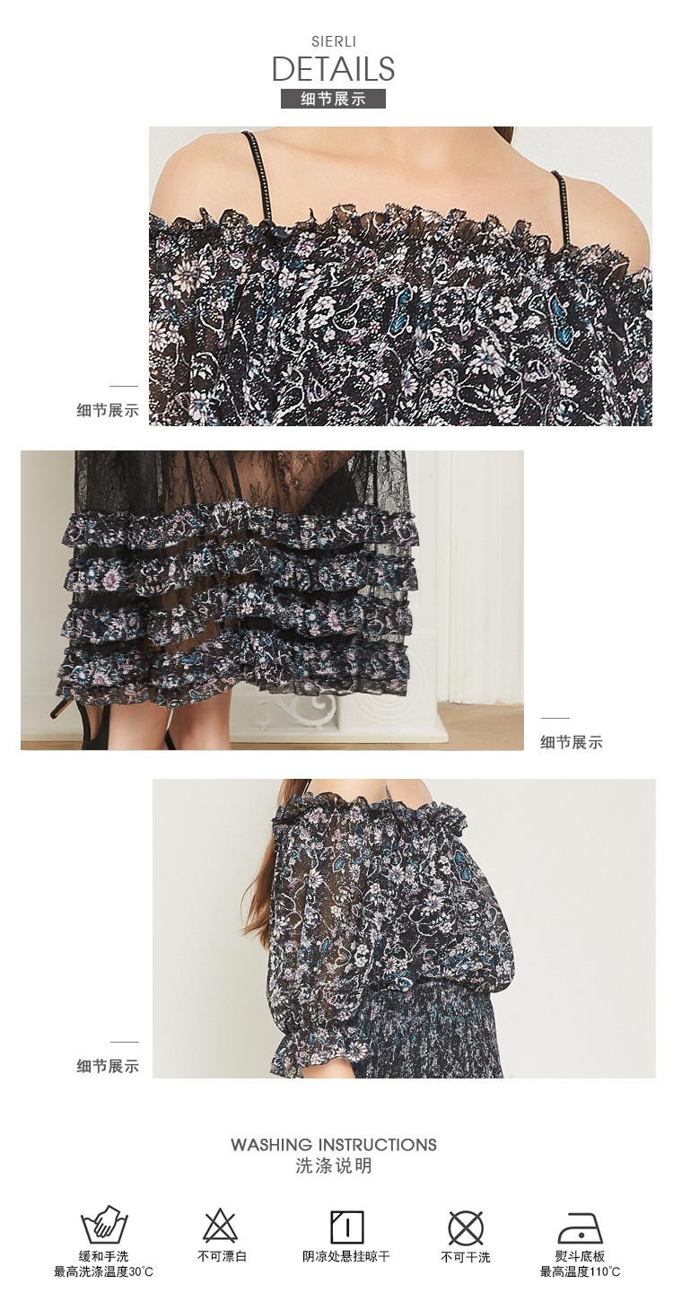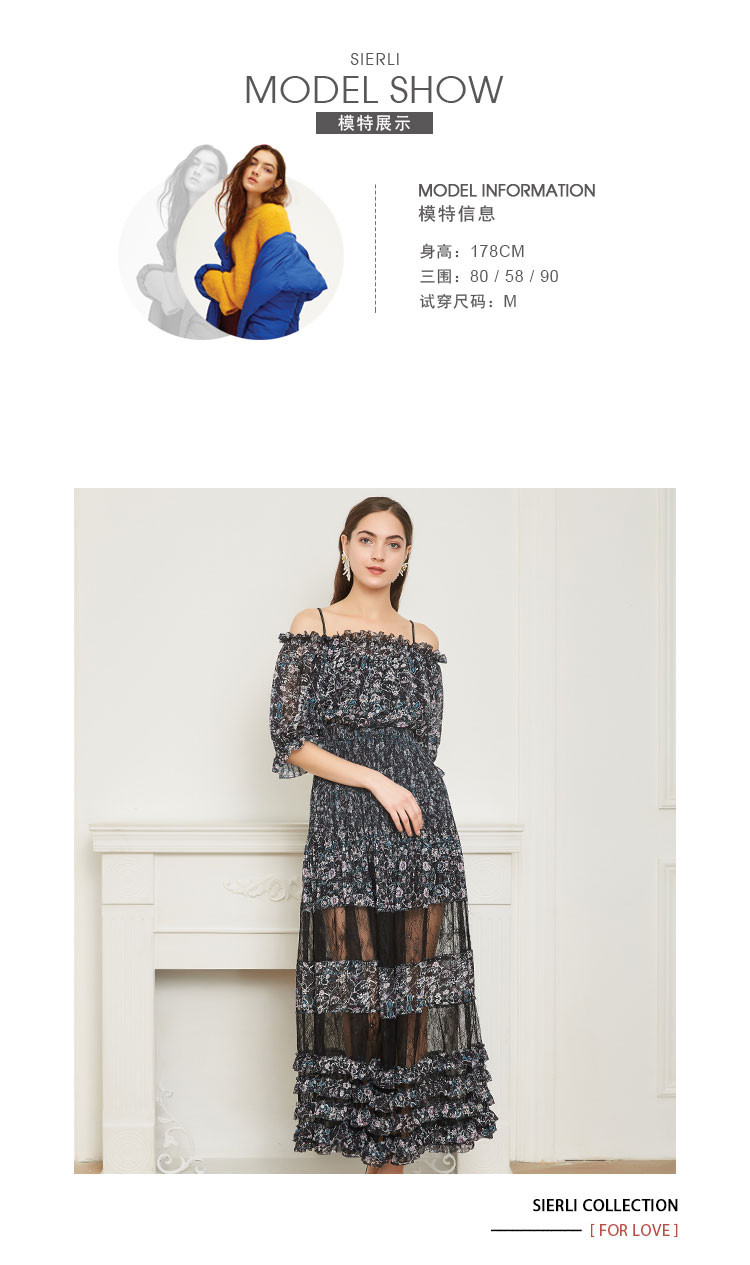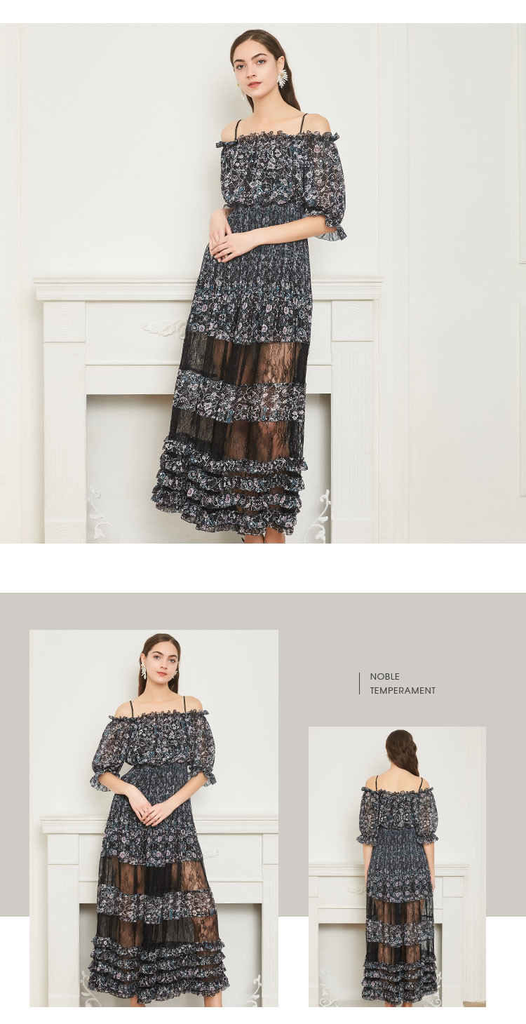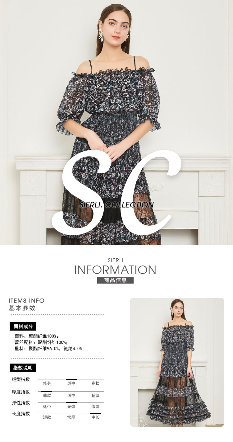 商品名称:商场同款一字肩碎花长款松紧腰短袖连衣裙 219615