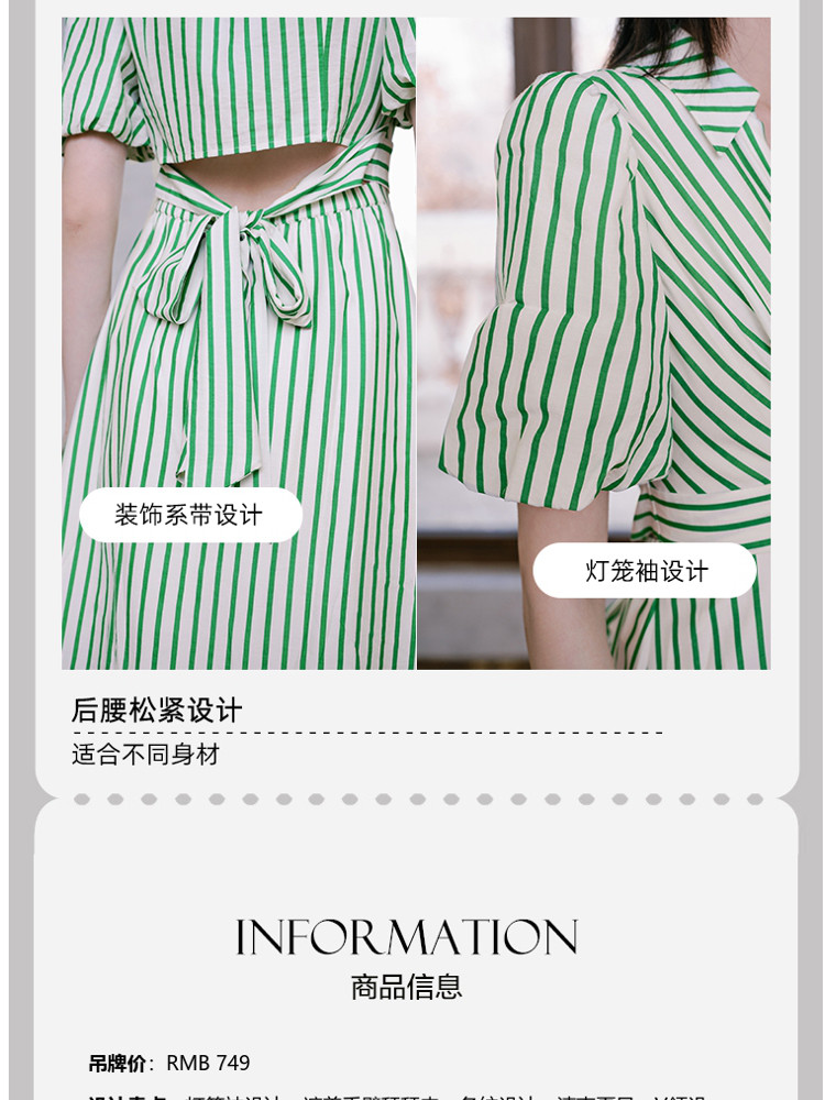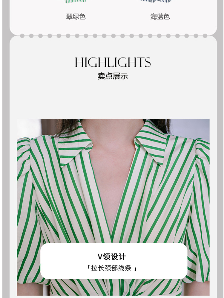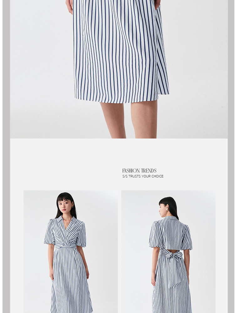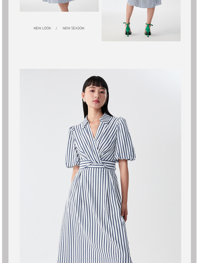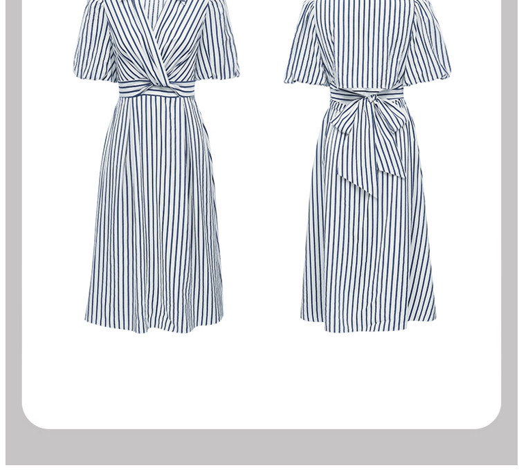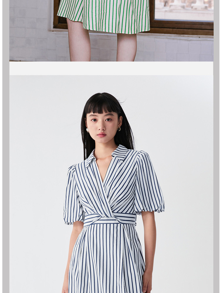 商品名称:【条纹长裙】A字灯笼袖V领收腰度假通勤连衣裙 275281