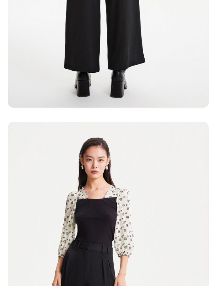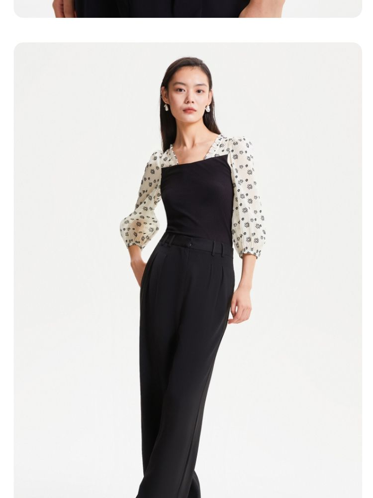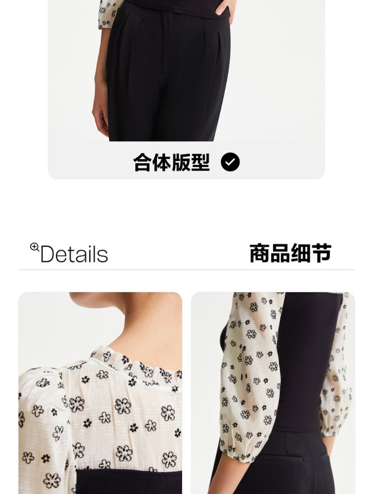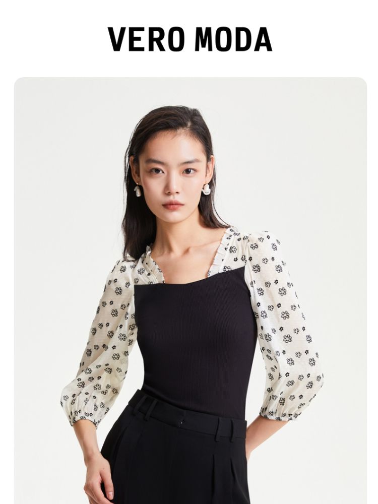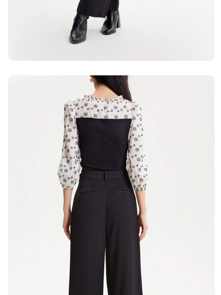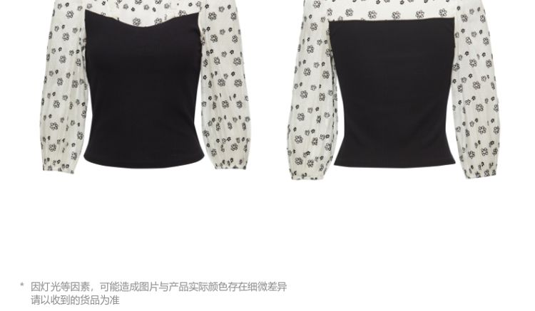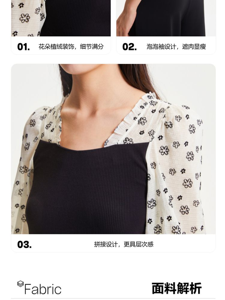 商品名称:【拼接花朵植绒】春夏高级感优雅甜美专柜款泡泡袖修身上衣百搭 135377