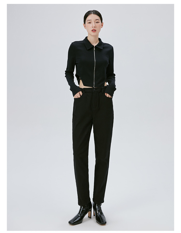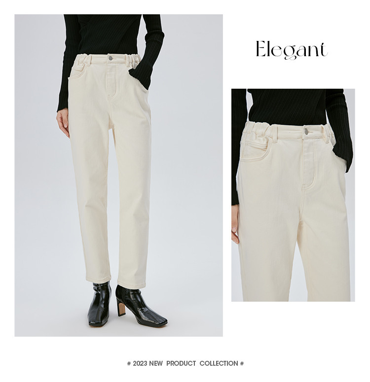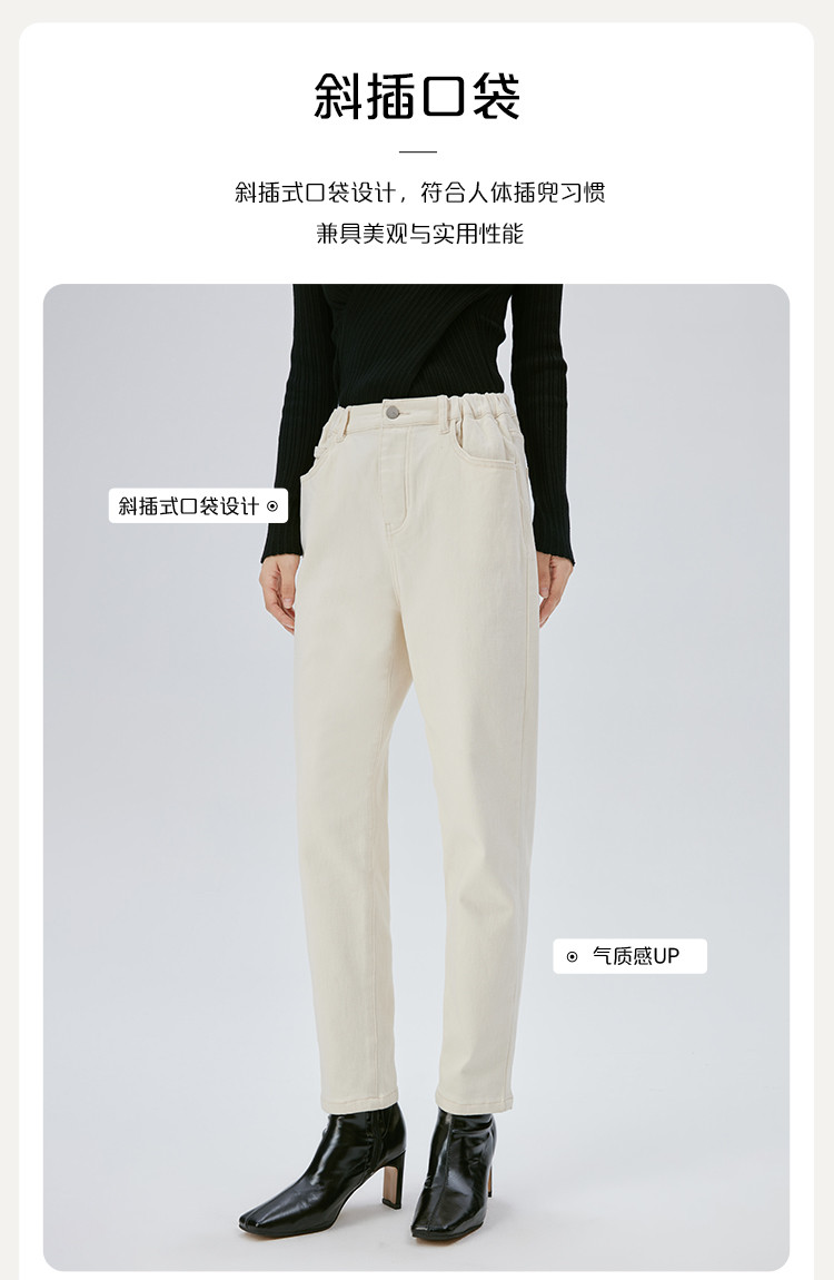 【牛仔漫游日记】秋简约风哈伦裤复古磨白萝卜裤撞色压线牛仔裤 984833