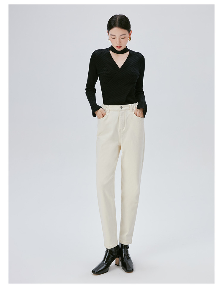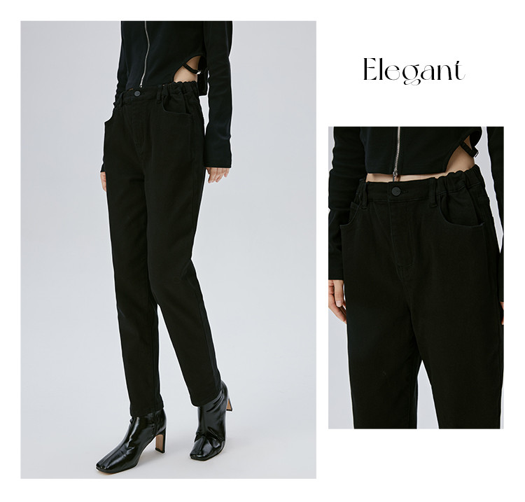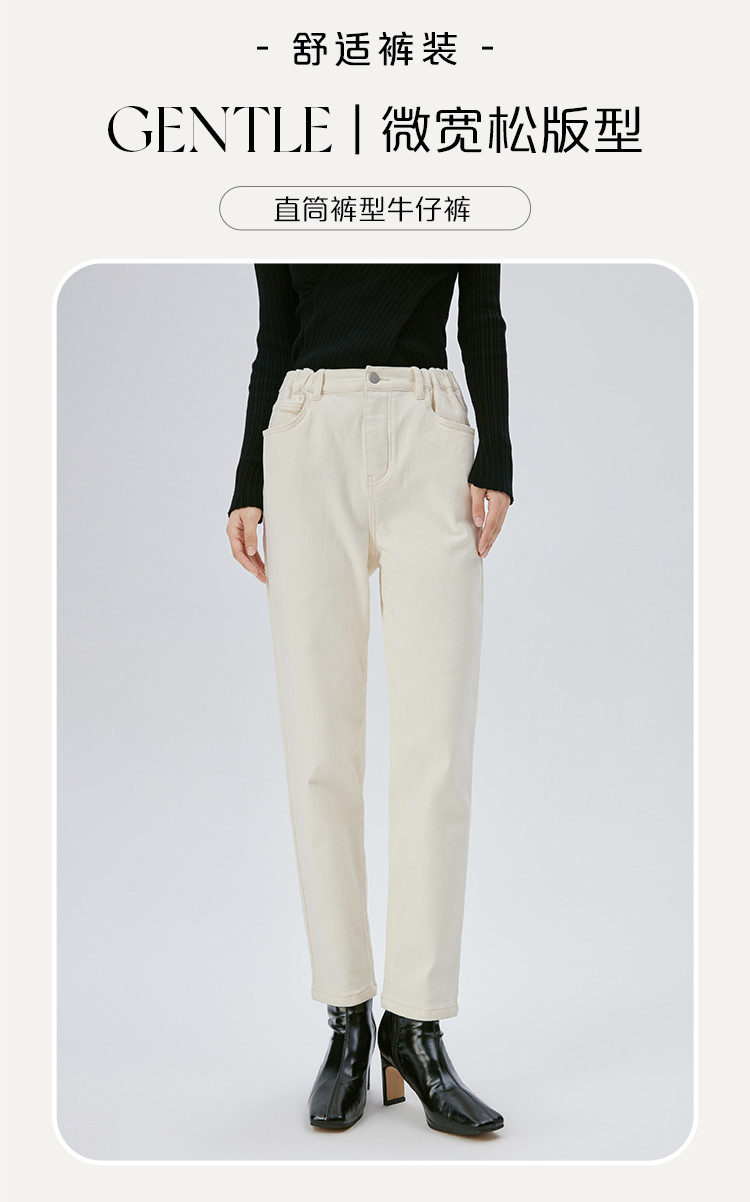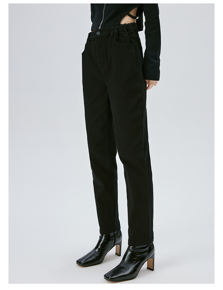 商品名称:秋冬百搭加绒直筒裤女高腰显瘦松紧腰牛仔裤女长裤女 522006