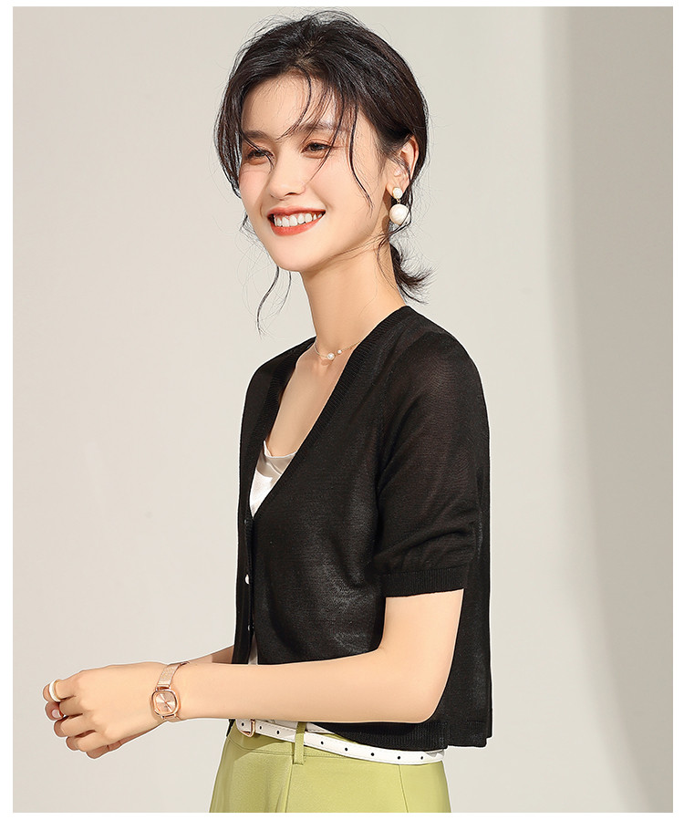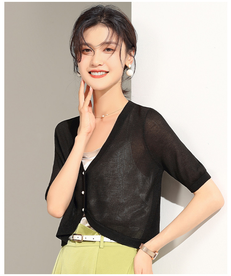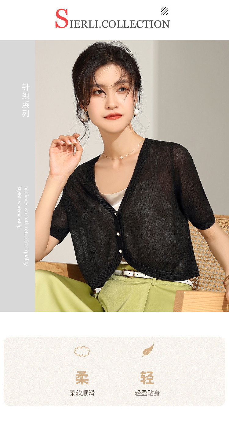 商品名称:【含桑蚕丝含莱赛尔】夏季外套女薄款披肩外搭镂空空调衫外套女夏 238047