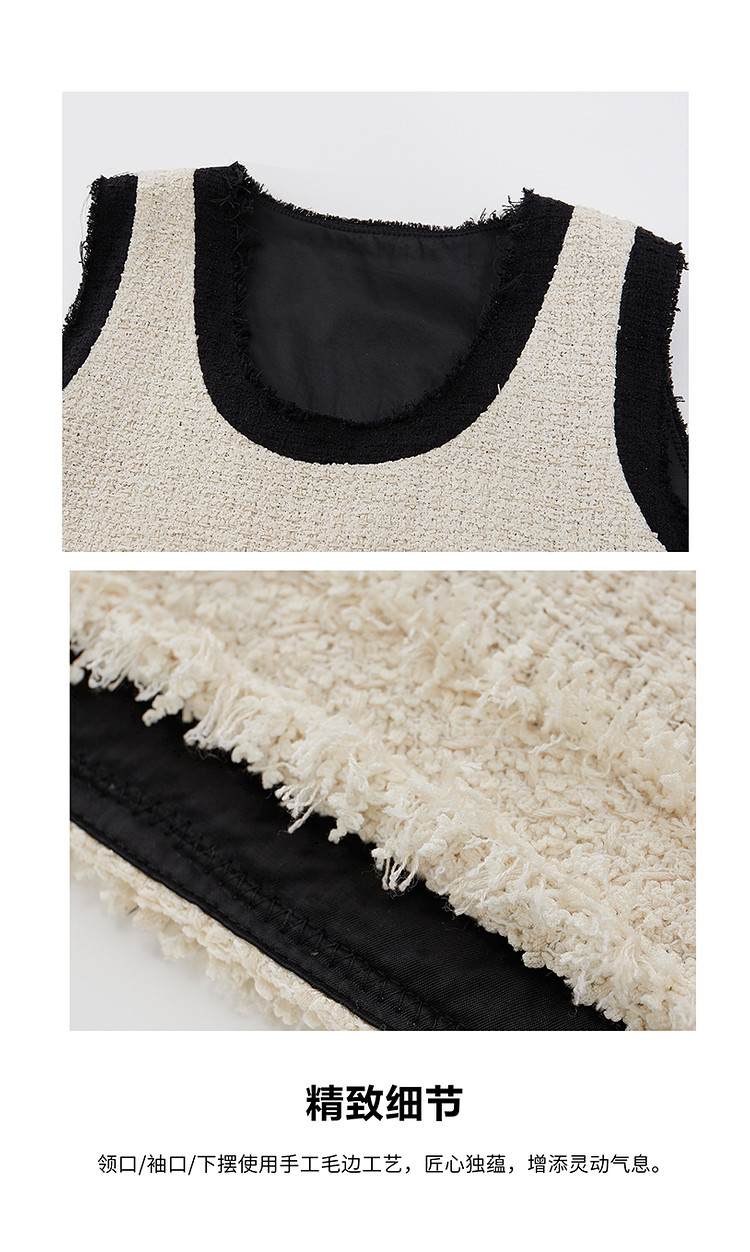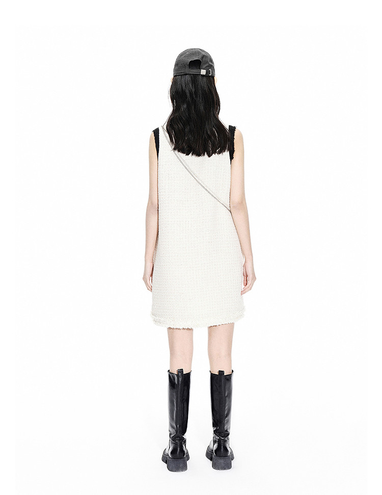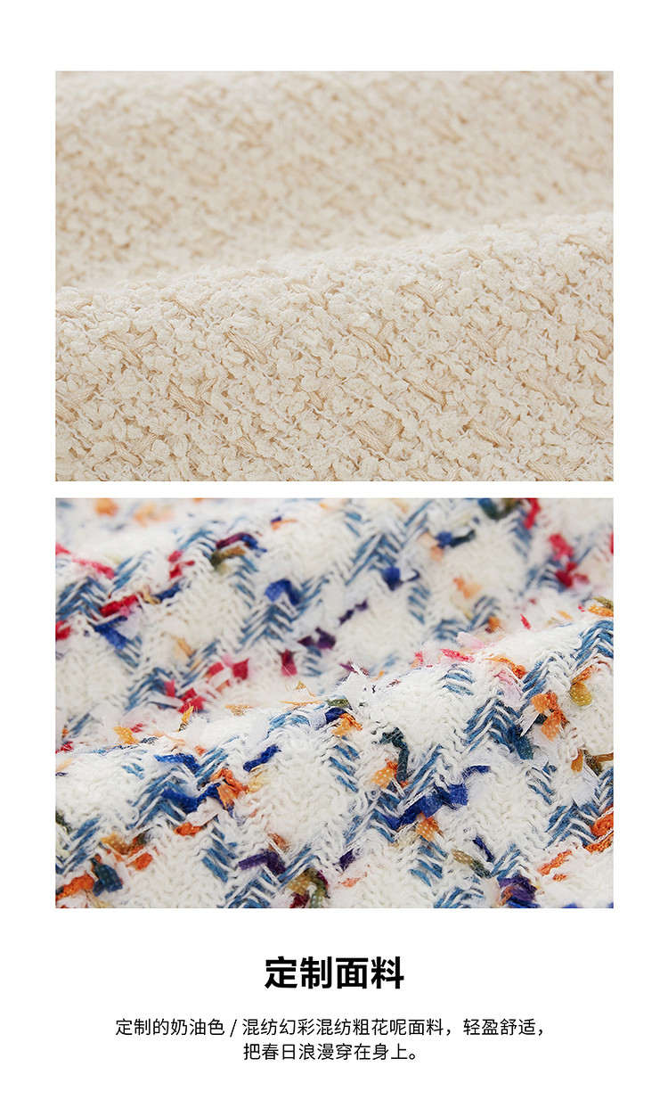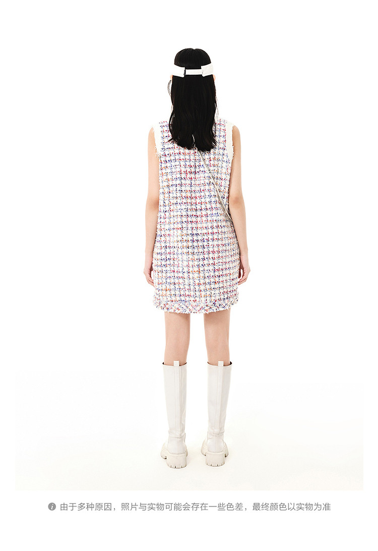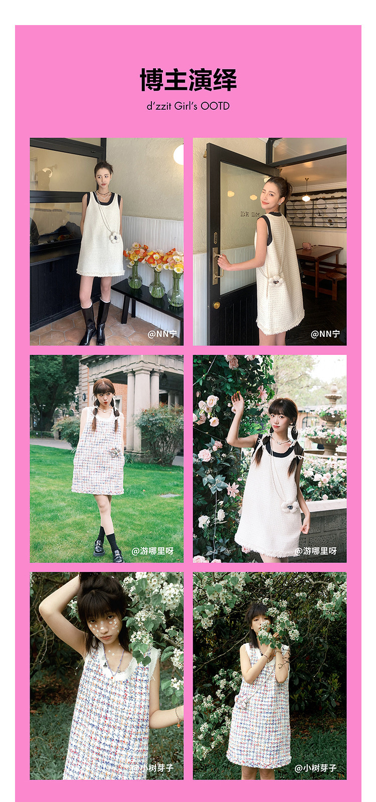 商品名称:地素夏秋小香风粗花呢斜跨双链条花朵装饰连衣裙女 107275