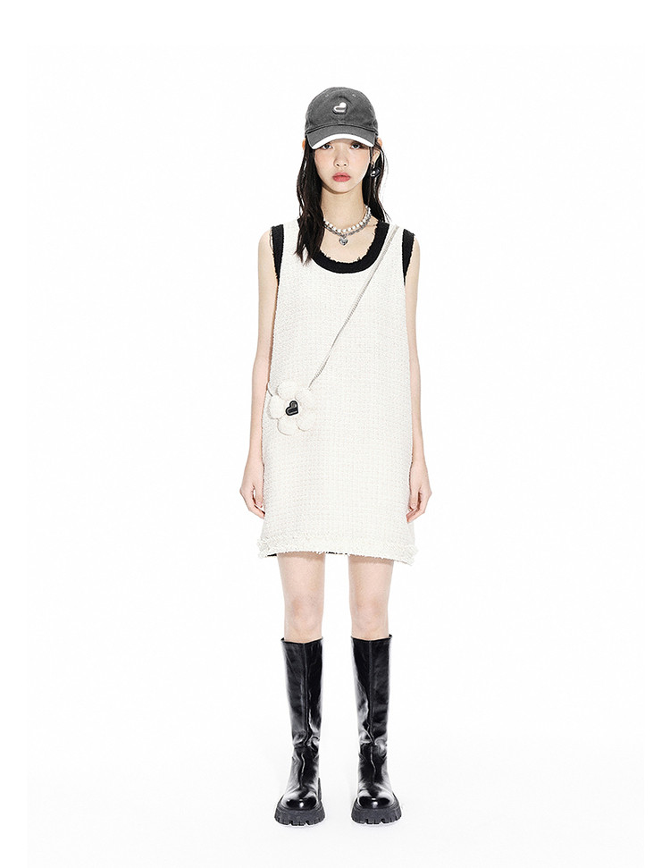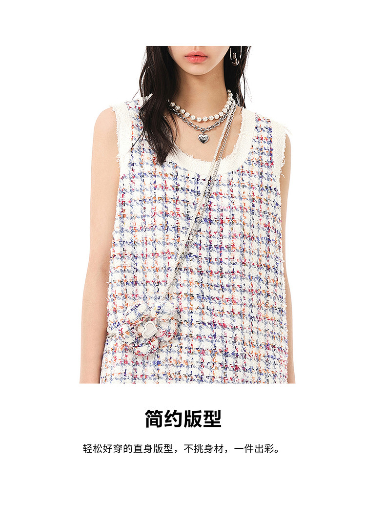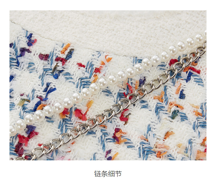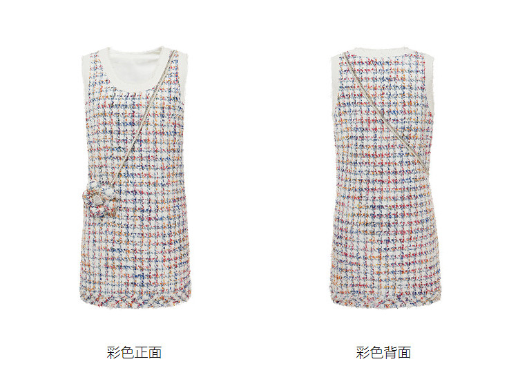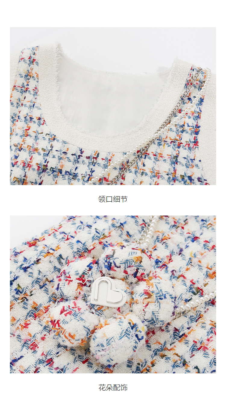 地素夏秋小香风粗花呢斜跨双链条花朵装饰连衣裙女 107275