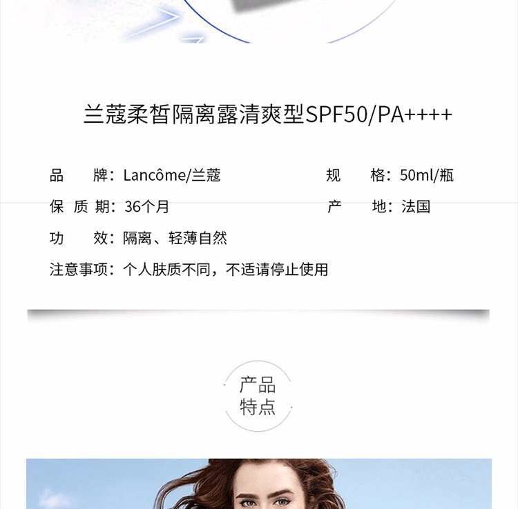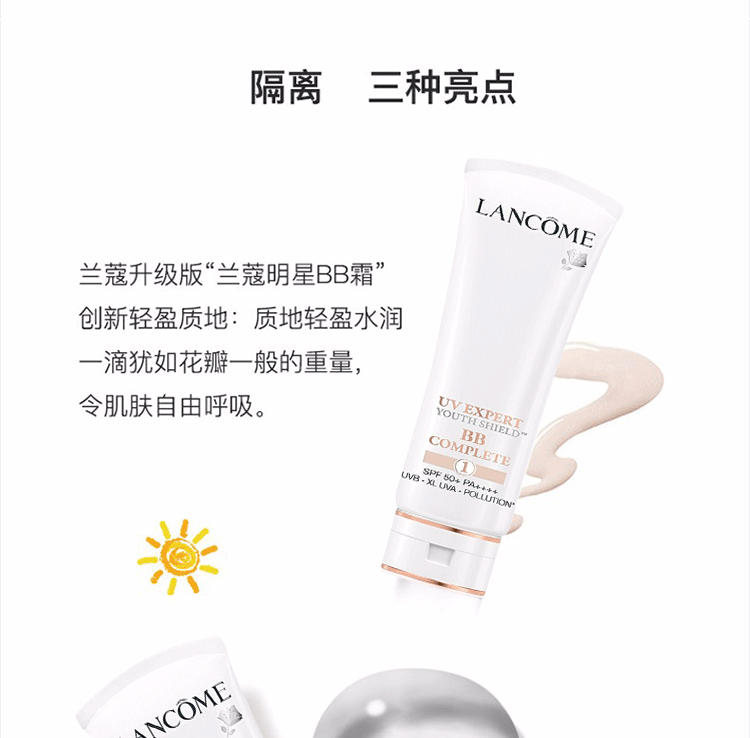 商品名称:Lancome/兰蔻 UV光透柔白防晒BB霜 50ml 新旧包装随机发