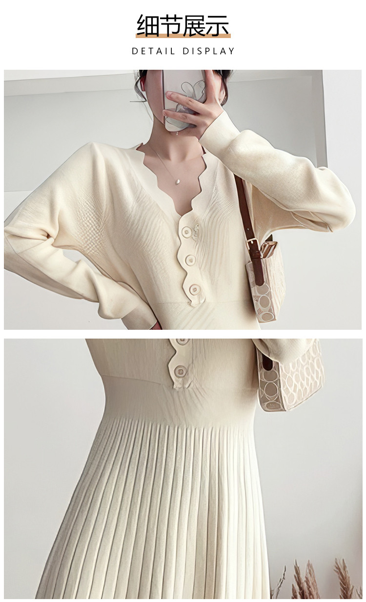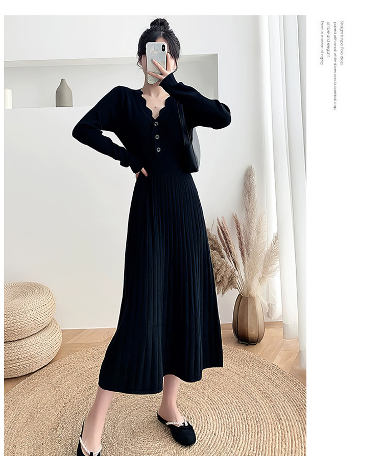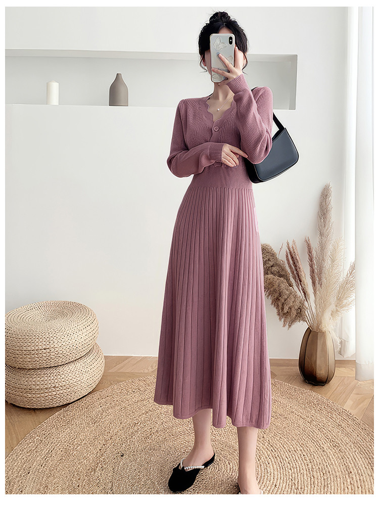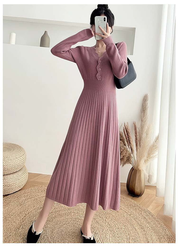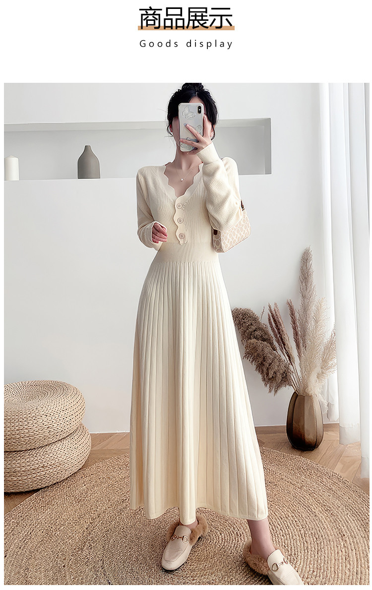 商品名称:长袖针织裙女优雅气质长连衣裙过膝长裙子 386435