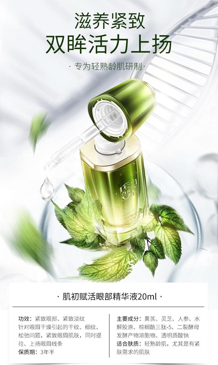 商品名称:百雀羚 肌初赋活抚痕眼部精华液 20ml 娇润紧弾 赋活眼眸 新老包装随机发货
