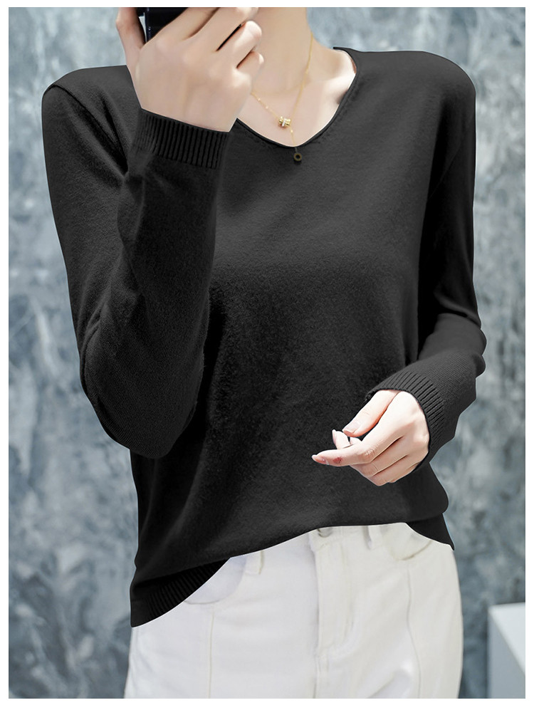 商品名称:v领针织衫女简约长袖针织衫女针织衫女 264643