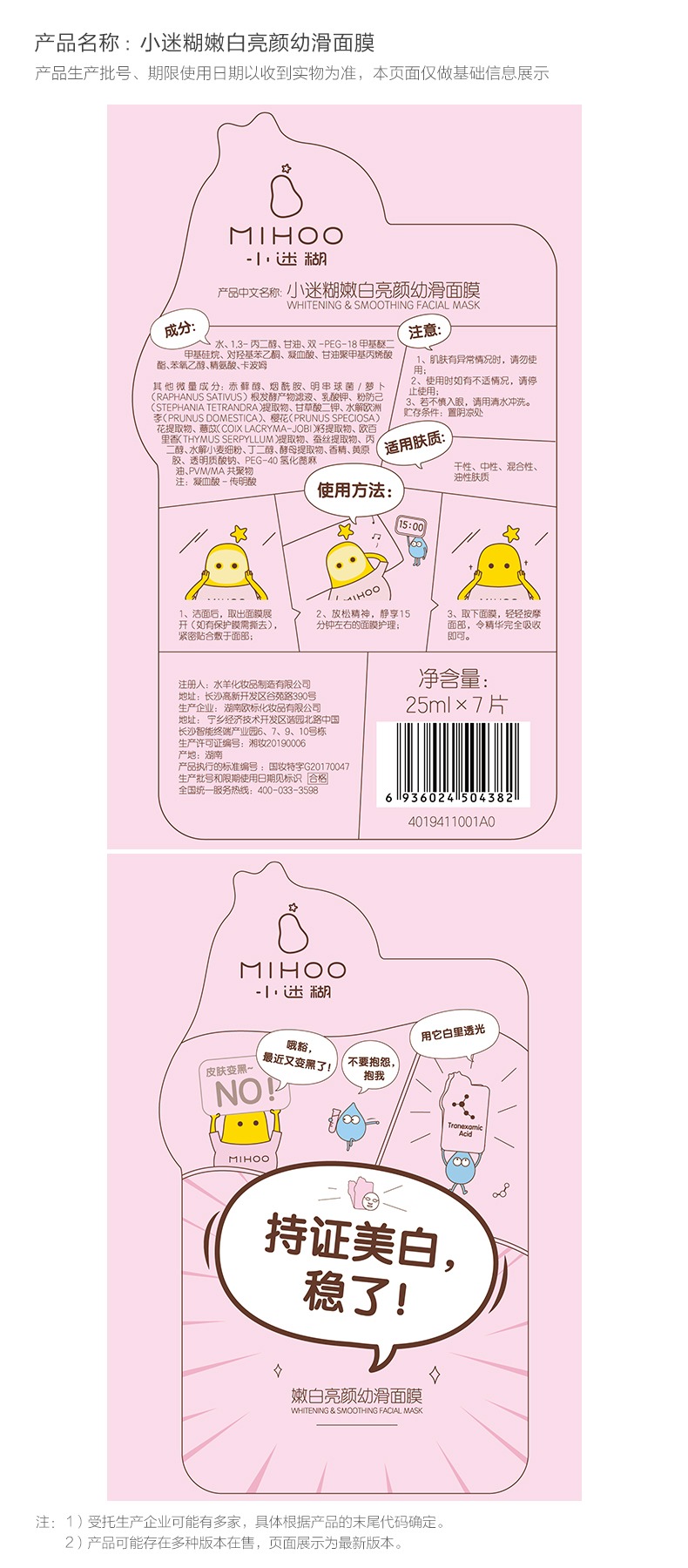 商品名称:小迷糊 嫩白亮颜幼滑面膜 20片