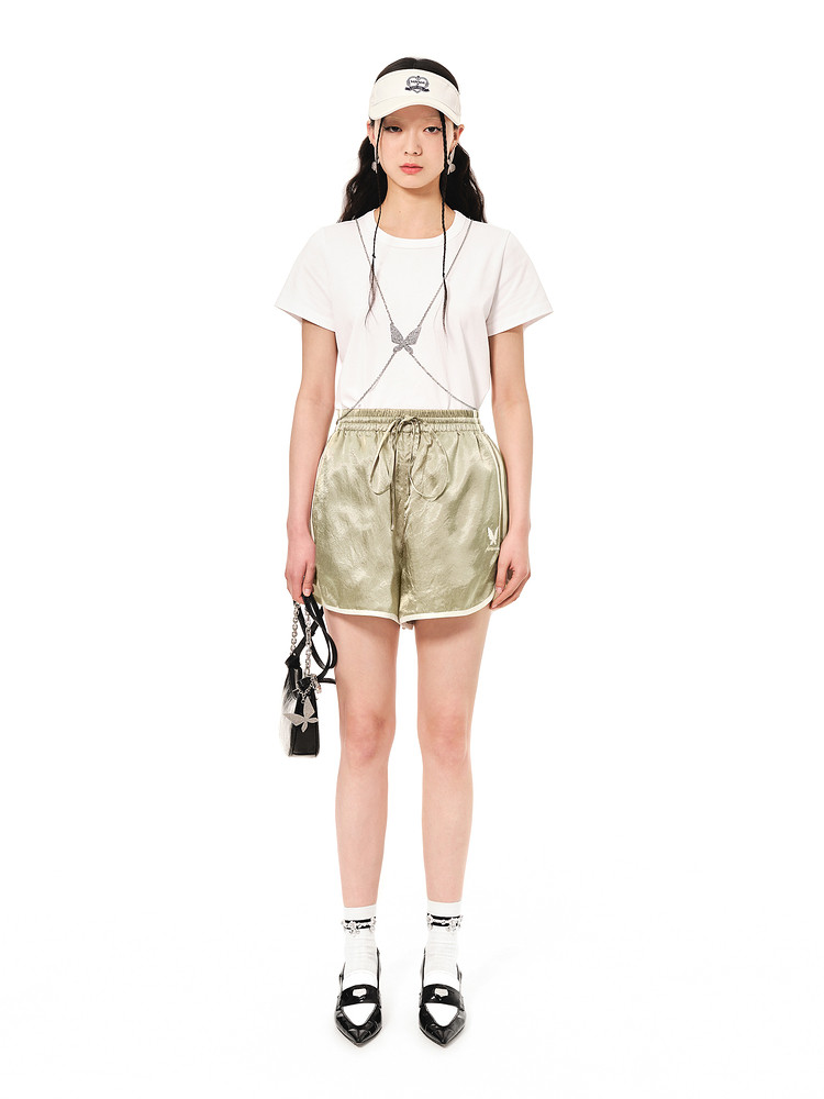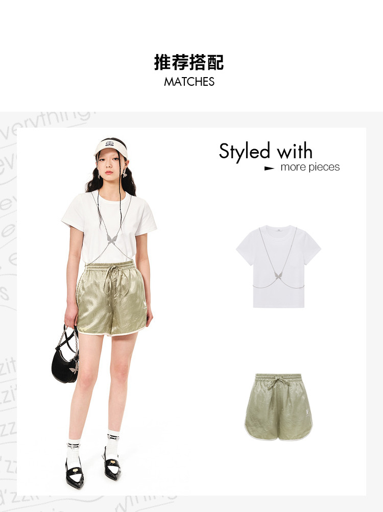 地素夏秋专柜复古运动边缘撞色松紧系带休闲短裤女 793547