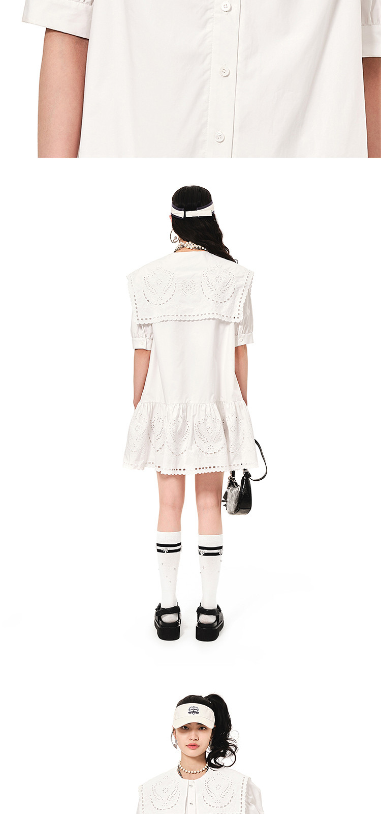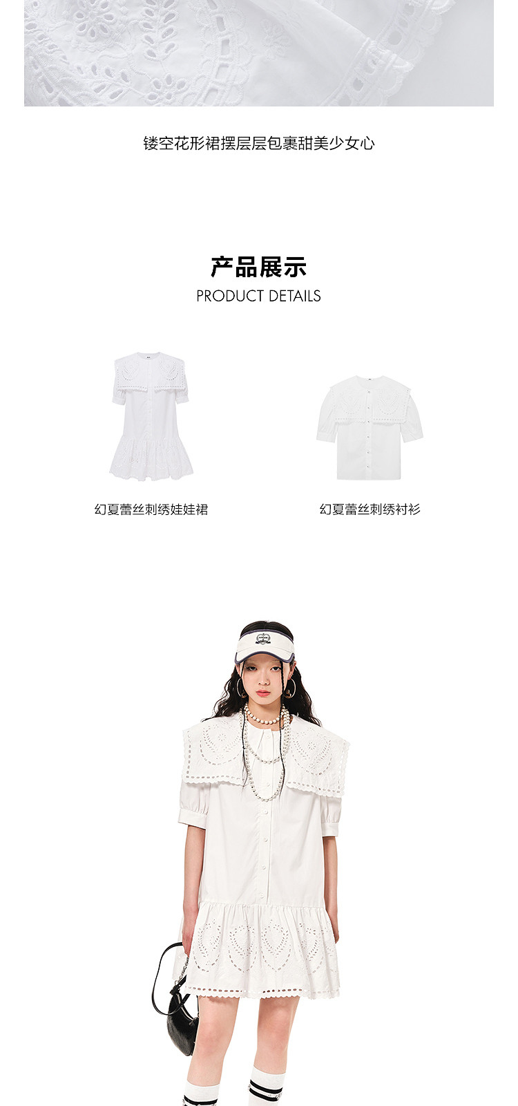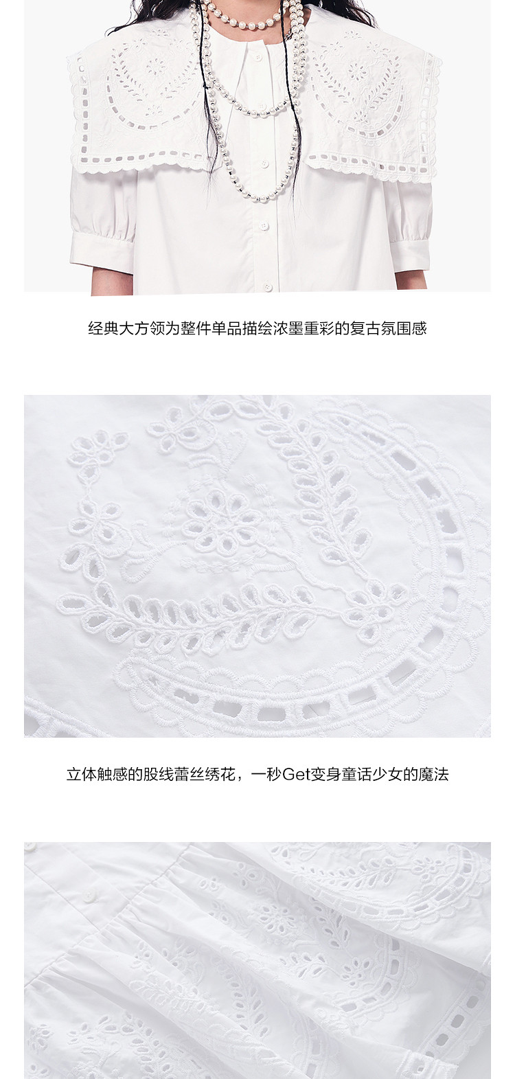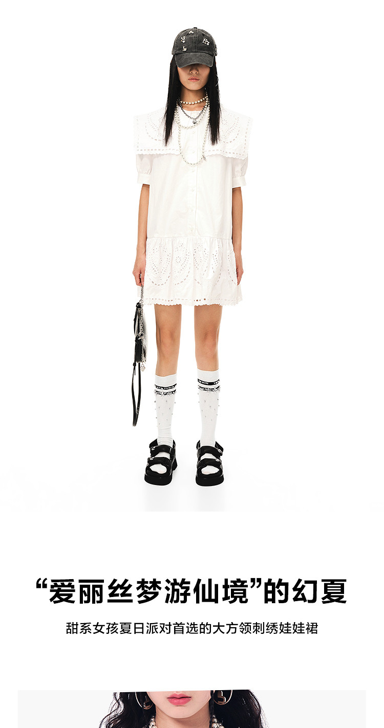 商品名称:地素连衣裙夏秋季专柜大翻领娃娃领法式镂空绣花裙女 478155