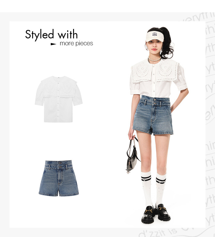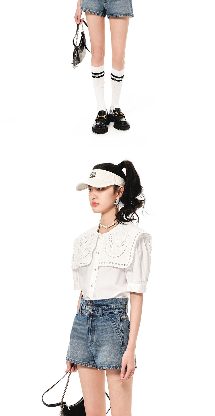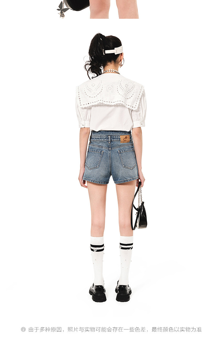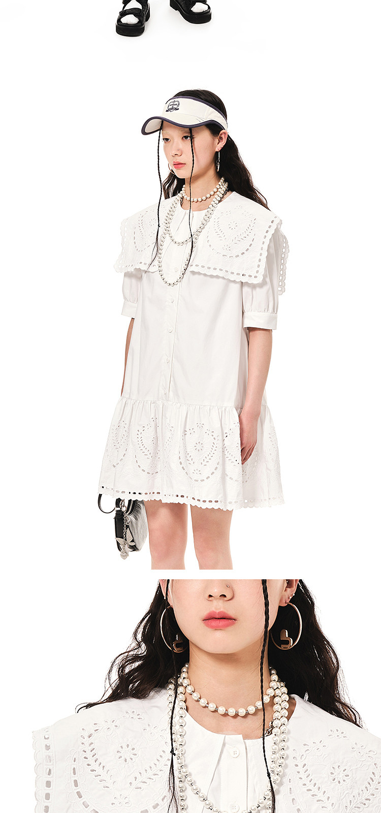 地素连衣裙夏秋季专柜大翻领娃娃领法式镂空绣花裙女 478155