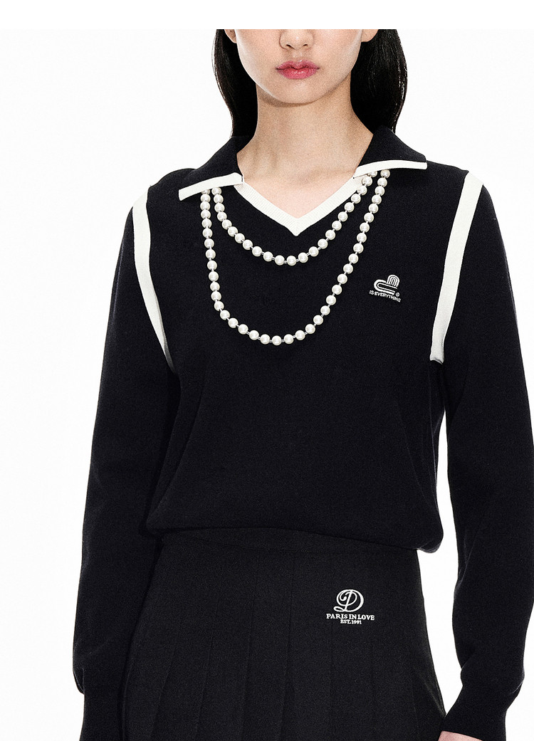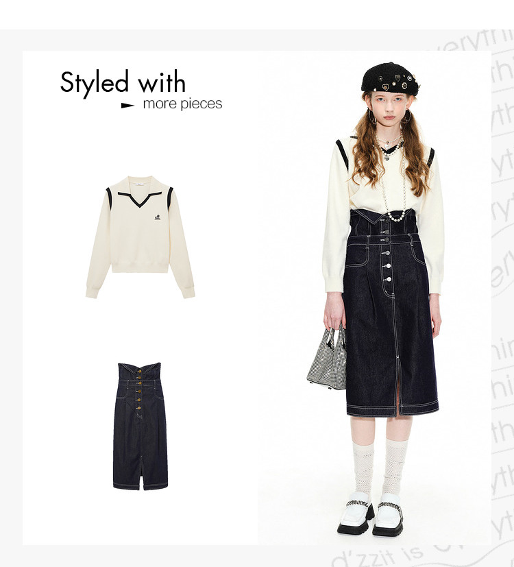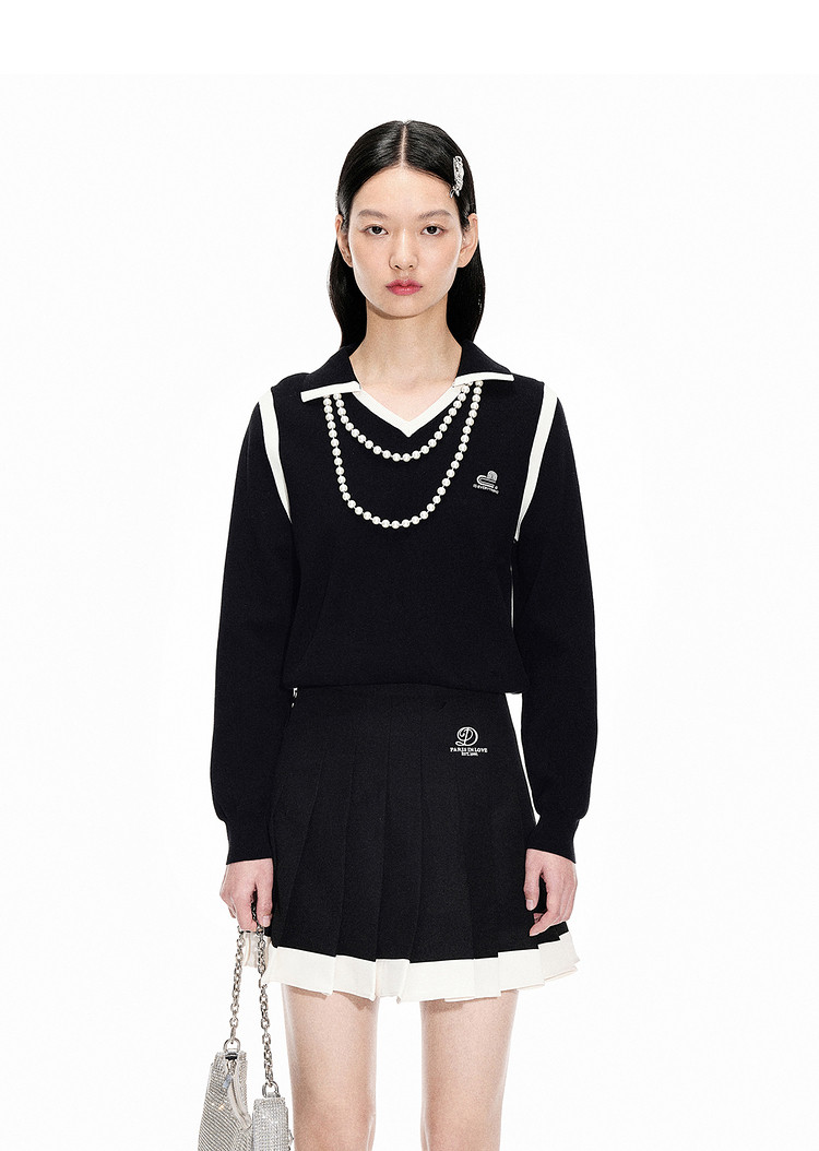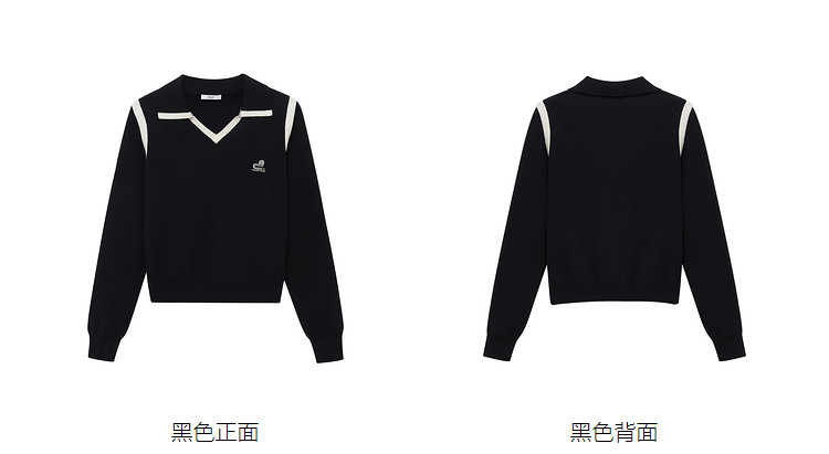 地素春秋季专柜针织长袖复古V领撞色针织衫(尺码偏小) 058123