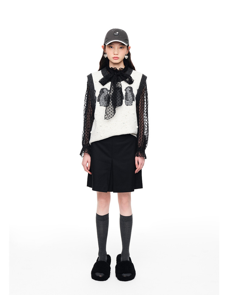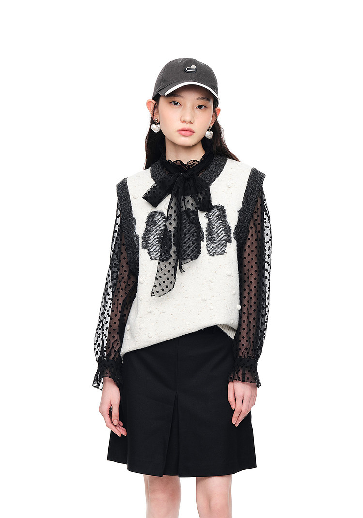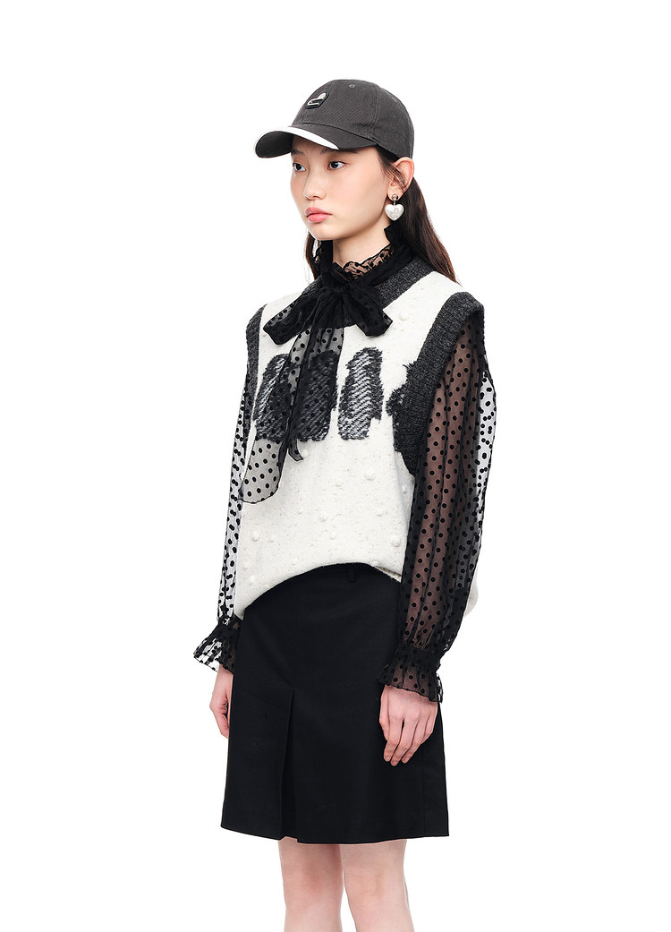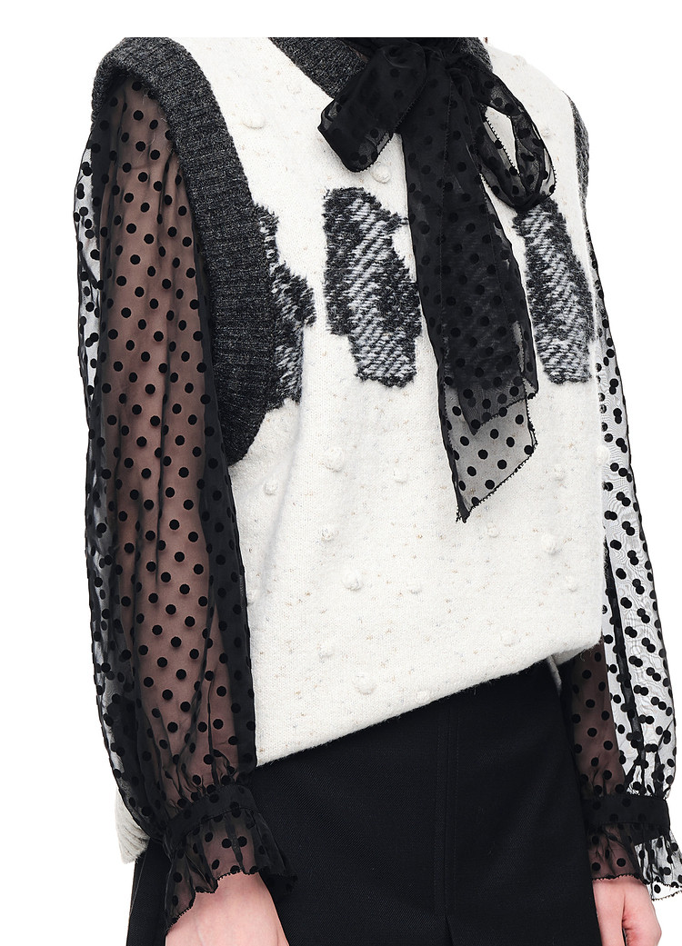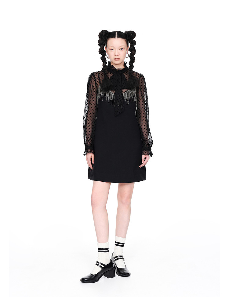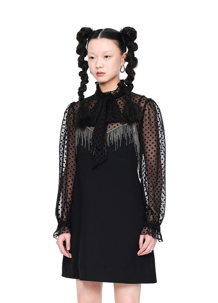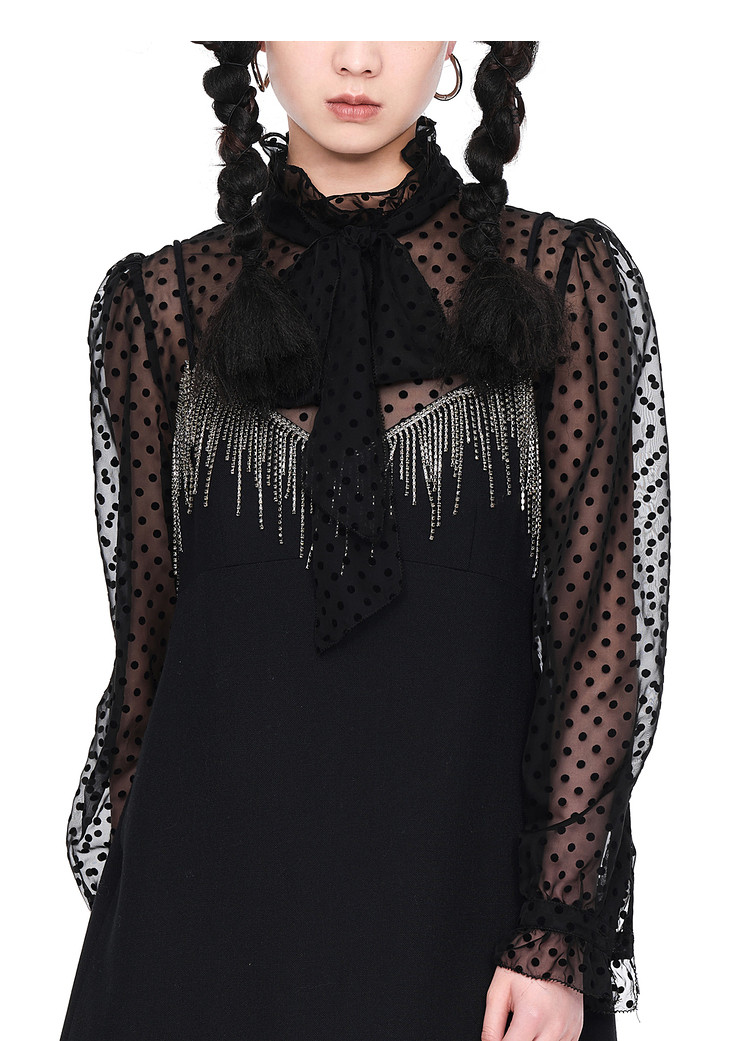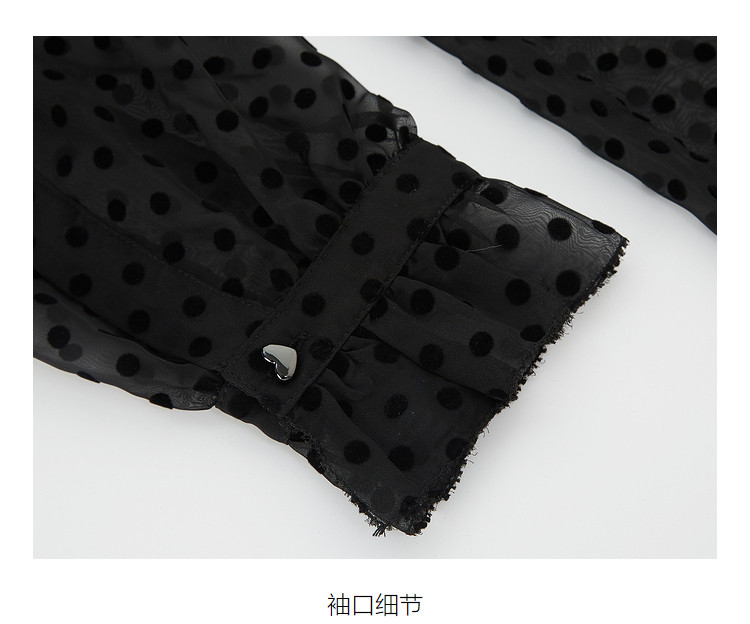 地素秋法式浪漫植绒波点图案长袖衬衫女 502923