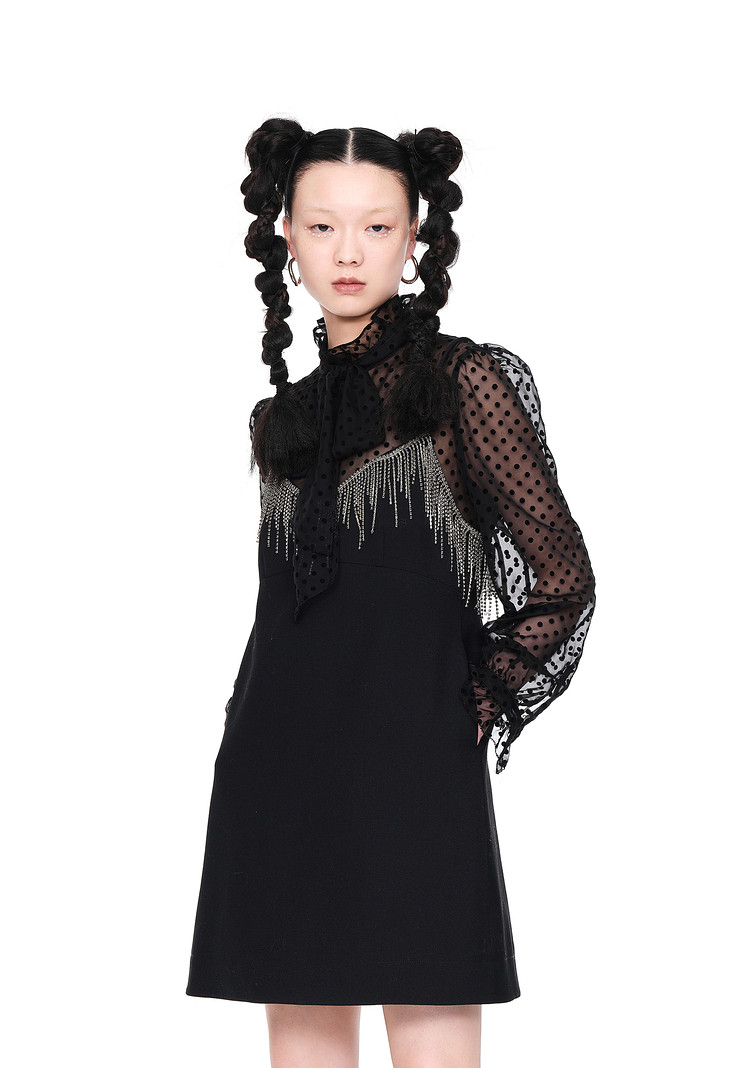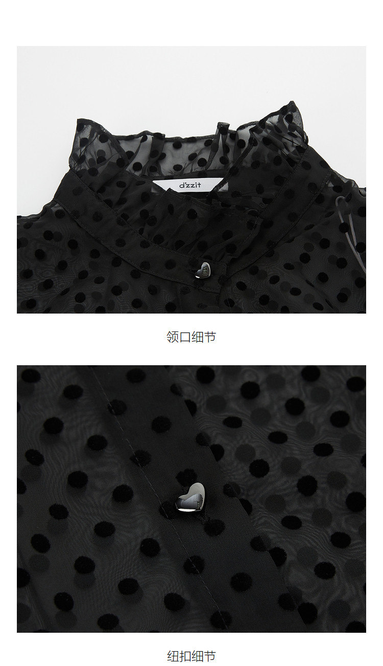 商品名称:地素秋法式浪漫植绒波点图案长袖衬衫女 502923