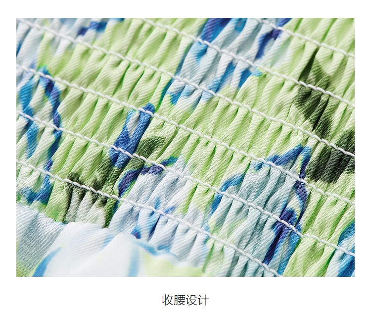 【油画碎花】方领泡泡袖修身连衣裙 059345