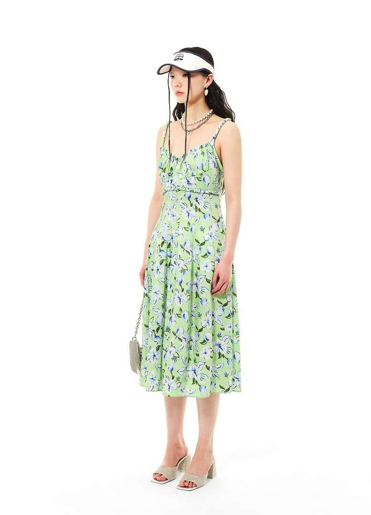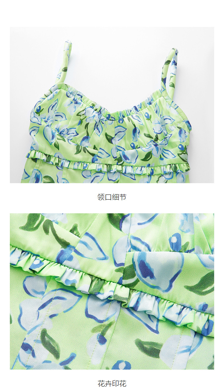 地素连衣裙夏秋季专柜法式浪漫收腰印花吊带裙女 760779