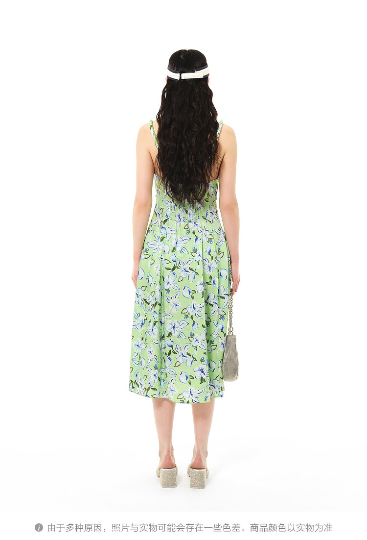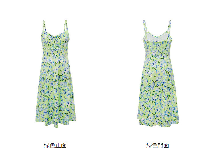 商品名称:地素连衣裙夏秋季专柜法式浪漫收腰印花吊带裙女 760779