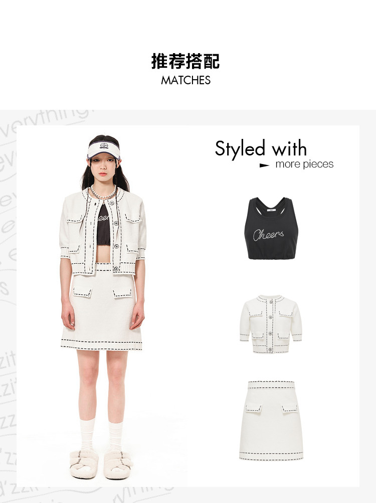 地素夏秋季专柜小香风明线装饰针织半裙 768971