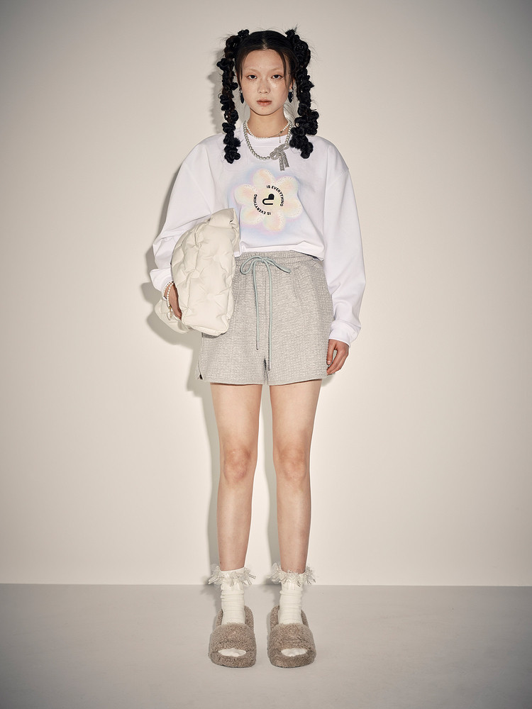 地素秋休闲风高腰抽绳松紧腰时髦短裤女 650187