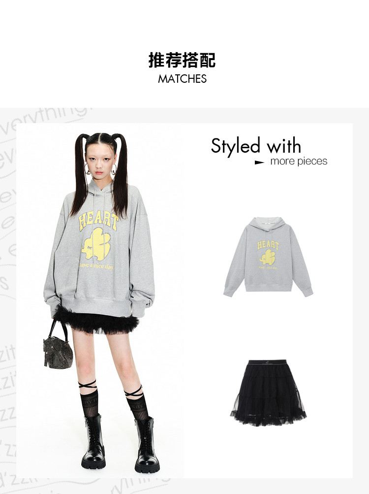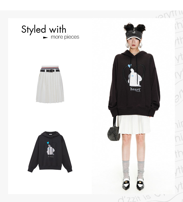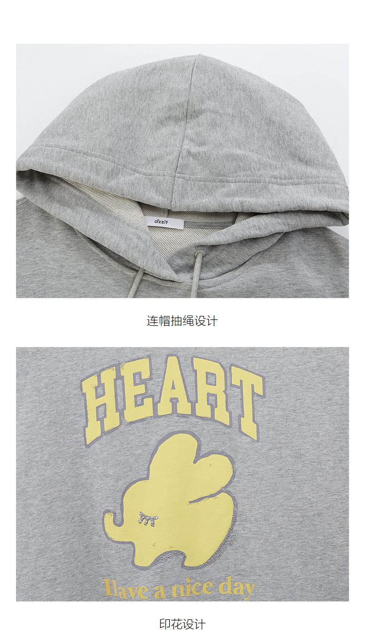 商品名称:地素春秋季专柜连帽抽绳小象印花连帽卫衣女(尺码偏大) 016459