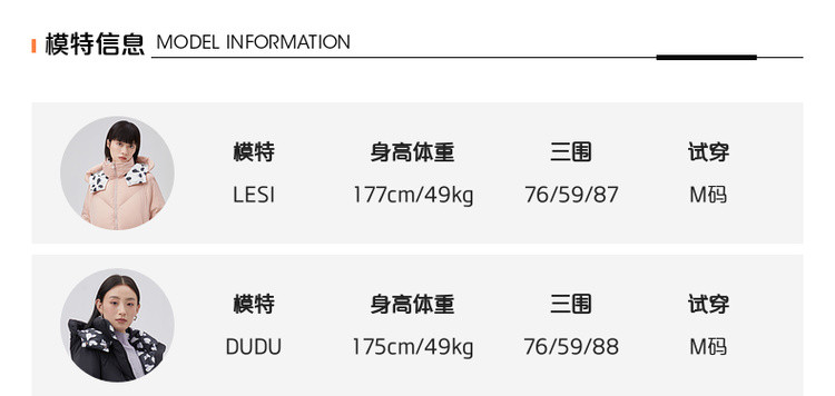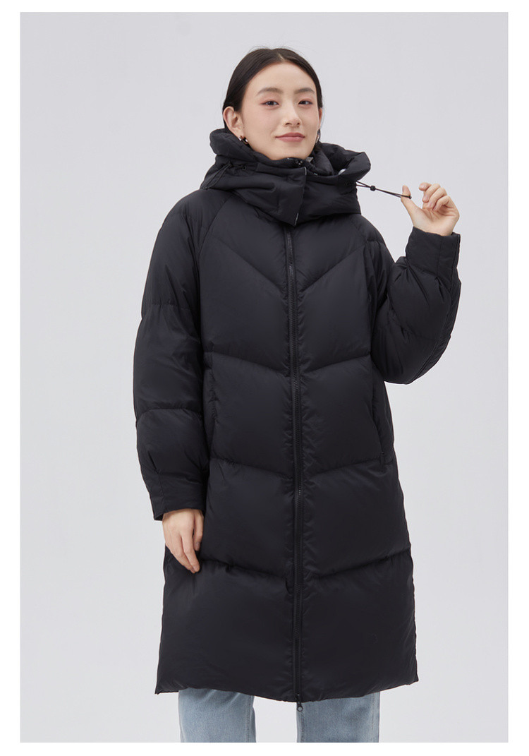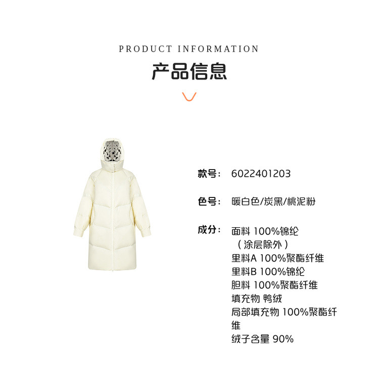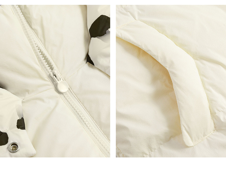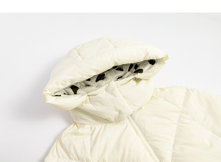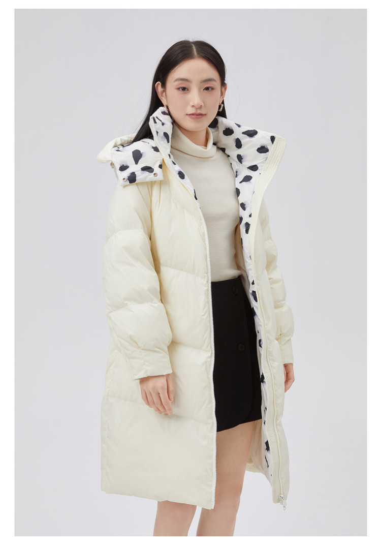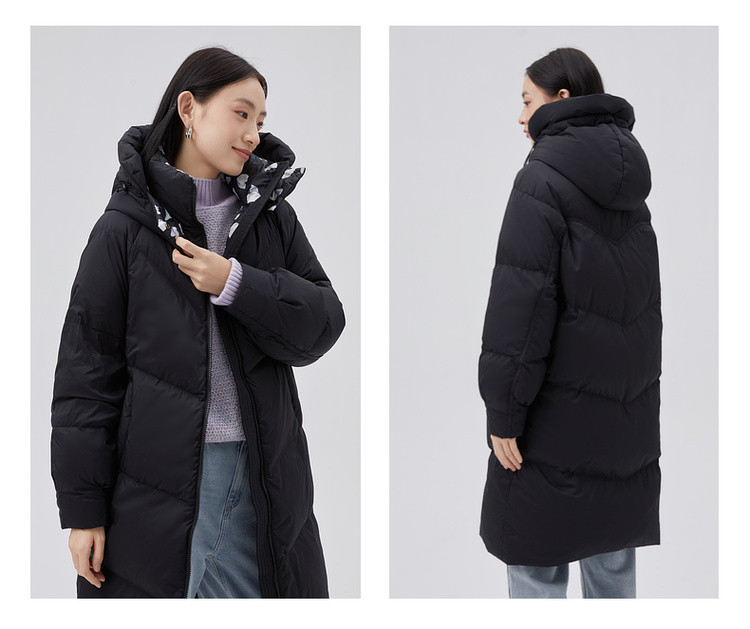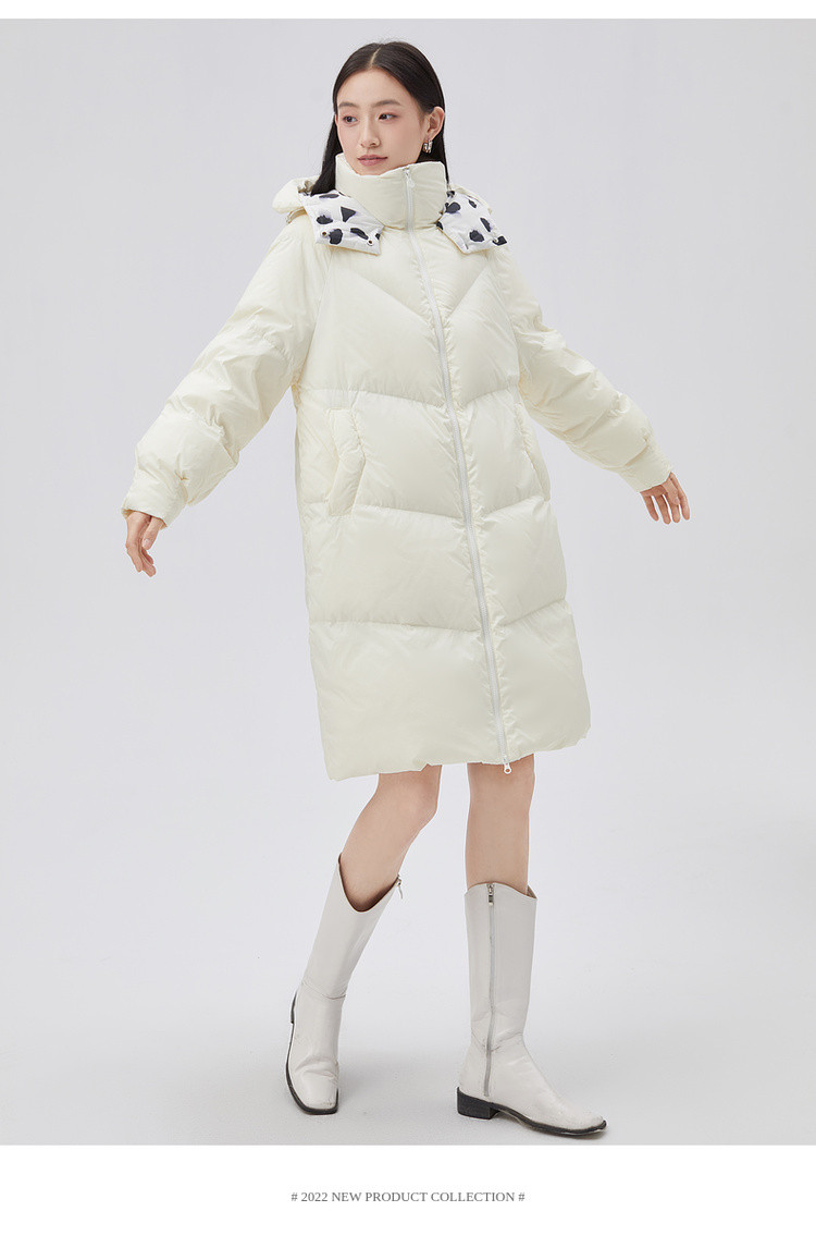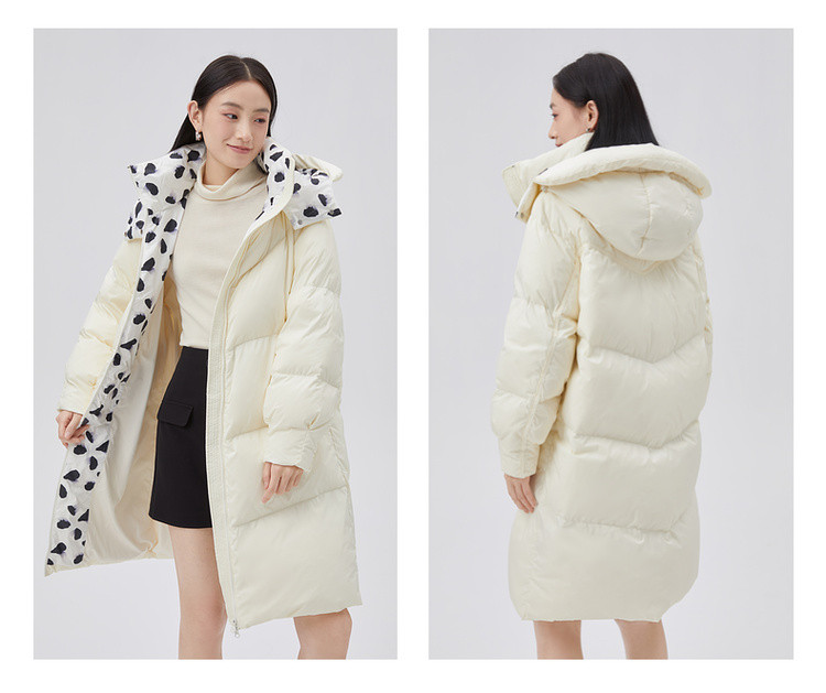 商品名称:【专柜同款】小清新印花保暖防风连帽鸭绒羽绒服女中长款 088342