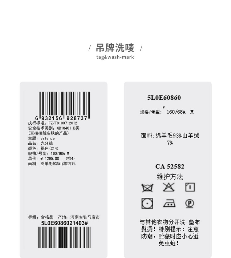 商品名称:冬九分裤锥形羊毛舒适裤装女 371595