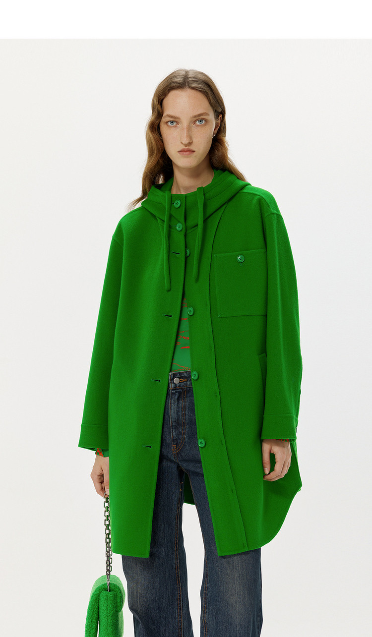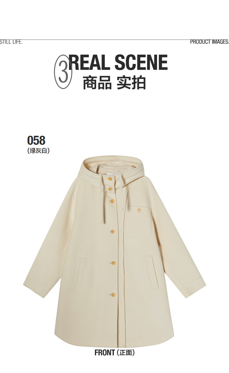 商品名称:春呢大衣翻领宽松H型外套女 055499